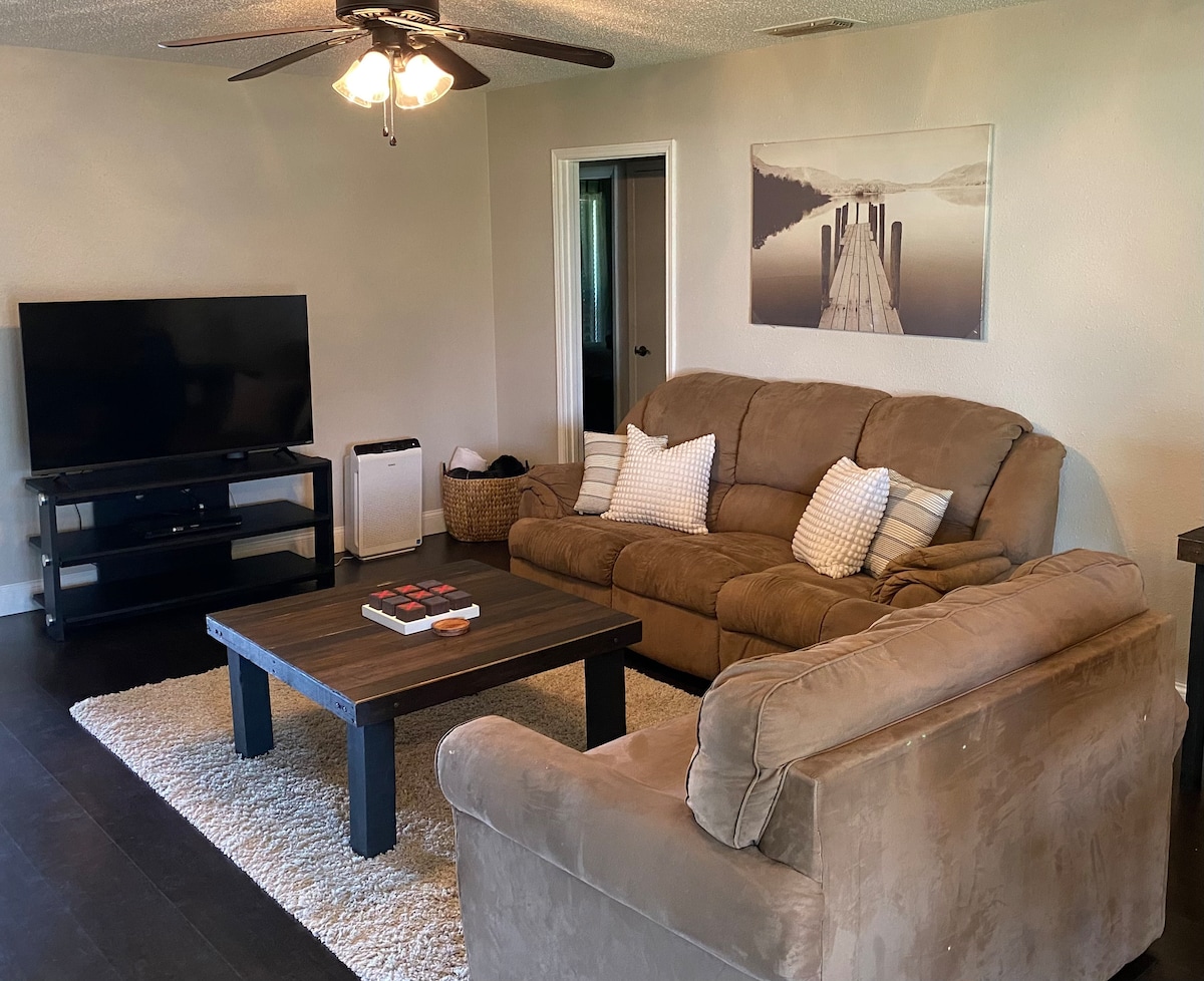 Gorgeous 3 Bedroom and 2 Bath with modern decor and stunning remodeled kitchen equipped with everything you need to feel like home. Feel like staying in? Play a game of pool or lounge in the inviting outdoor patio for a bbq or toast some s'mores while you sit around an outdoor firepit. All rooms are equipped smart TVs, memory foam mattresses, and ceiling fans along with AC to keep you cool and comfortable Great location and only 3.1 miles from Little Elm Park - Lake Lewisville.
