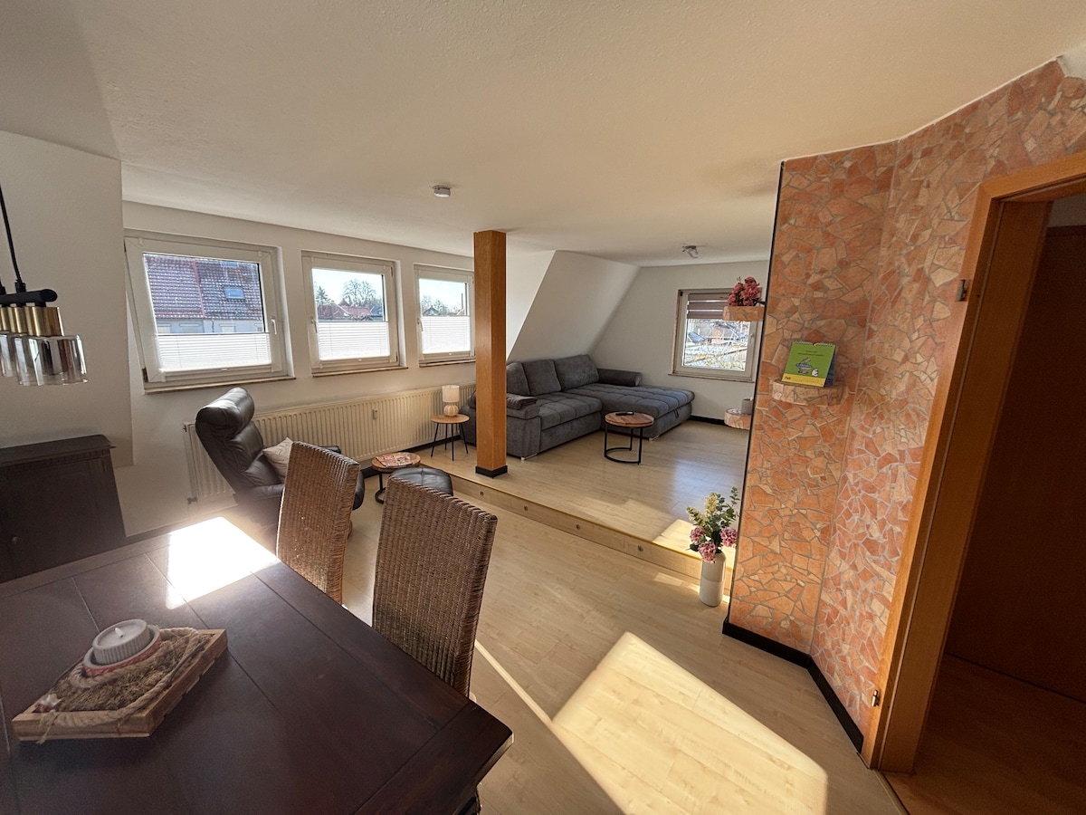 This 62 m2 large apartment is located on the second floor of our original half timbered house. A shared staircase leads to this apartment which consists of a living area with two armchairs, a sofa, a kitchenette with a table and 4 chairs, two bedrooms and a bathroom. Each bedroom has two single beds (adjacent / next to one another) which can be placed together - after consultation, to form a double bed arrangement.