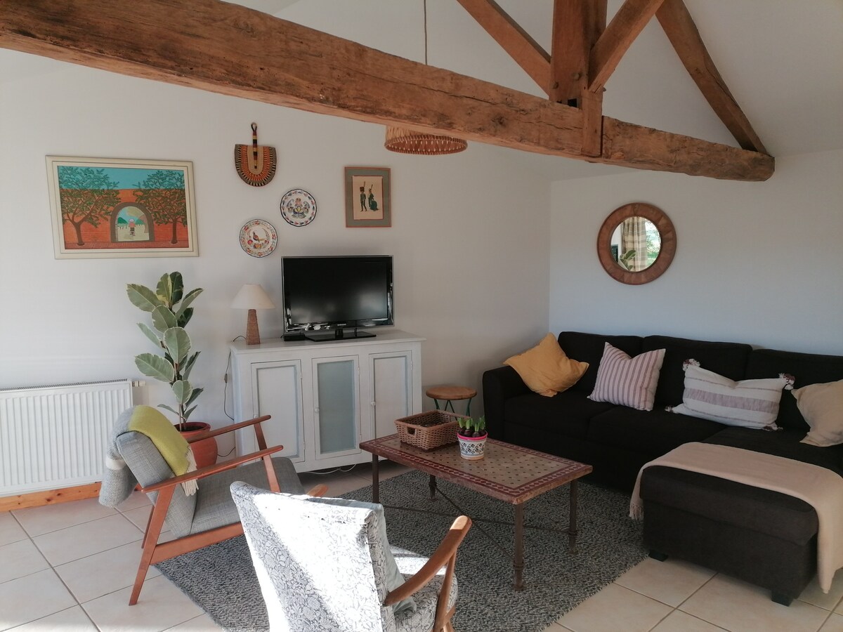 Charming split level, open plan gite, converted from an old stone barn attached to the family fermette set amongst fields, hedgerows and trees. Wood burning stove heating.Located on a peaceful rural lane close to the local village. Wonderful forest walks in close proximity. All mod cons and plenty of car parking space. Light and airy. There are numerous places of interest in the area serving a wide variety of tastes, as well as plenty of routes to explore for ramblers, walkers and cyclists.