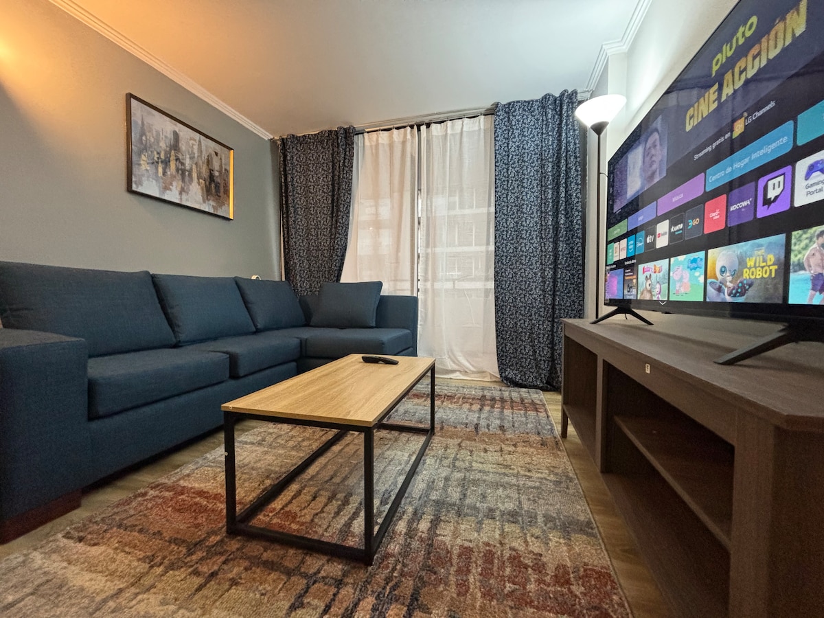 Departamento Ejecutivo con Terraza Privada en el Corazón de Providencia . Amplio, luminoso y estratégicamente ubicado en Nueva de Lyon, a pasos del Metro Los Leones, sector corporativo y a solo 3 cuadras del centro comercial costanera center . Ideal para viajes de trabajo, en familia, estadías corporativas y profesionales que buscan comodidad, conectividad y equipamiento completo.