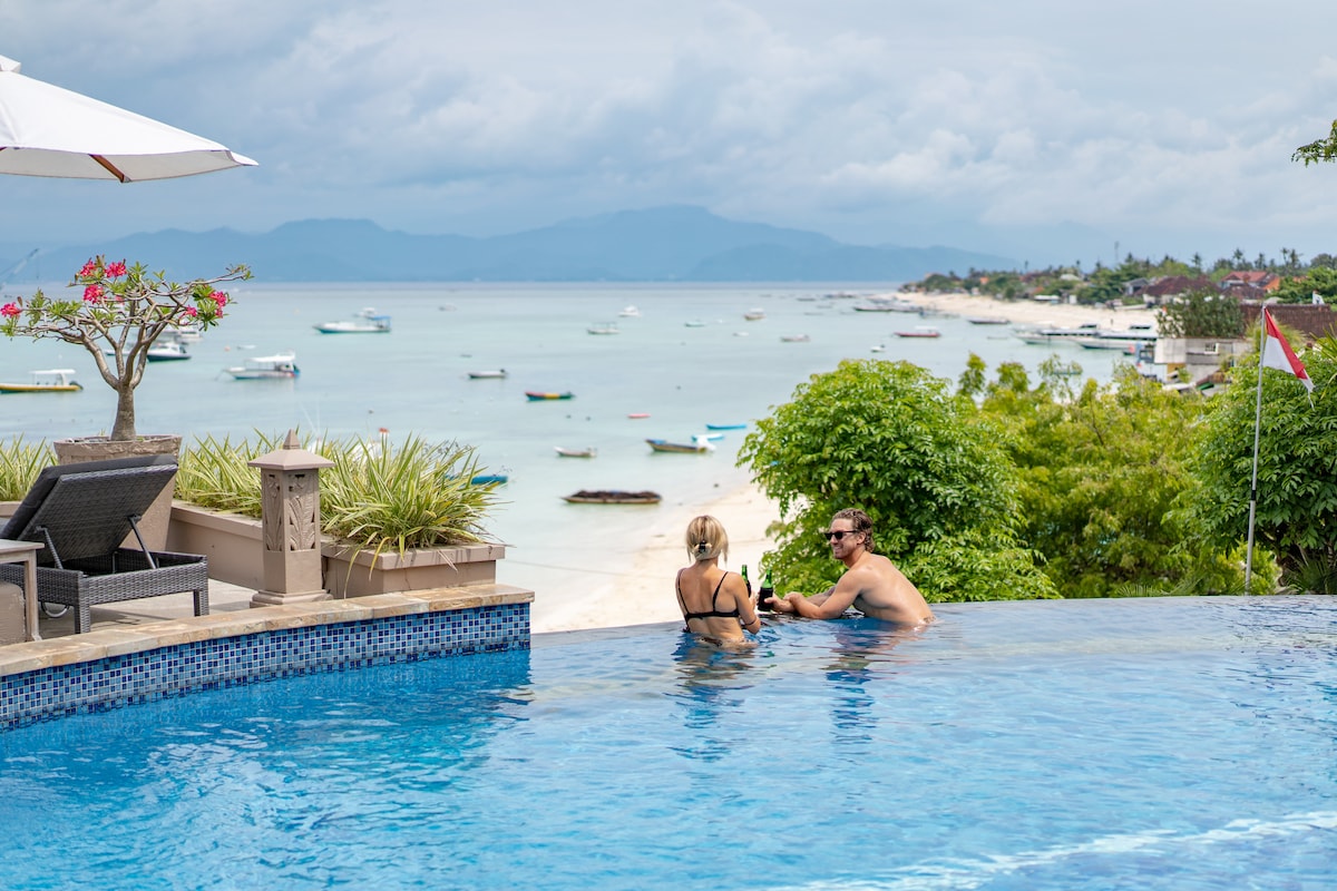 Wake up to ocean and Mount Agung views from your private villa in tropical gardens. Villa Aluna offers an intimate yet luxurious retreat with a spacious bedroom, semi-open bathroom and a private plunge pool in a landscaped garden. Perfect for honeymoons and romantic escapes, the villa includes a free floating breakfast. Lounge on sunbeds, feel the breeze under the bamboo roof, or book snorkeling and island tours with us. Discover the luxury of Mimpi Villas Penida – where romance meets nature.
