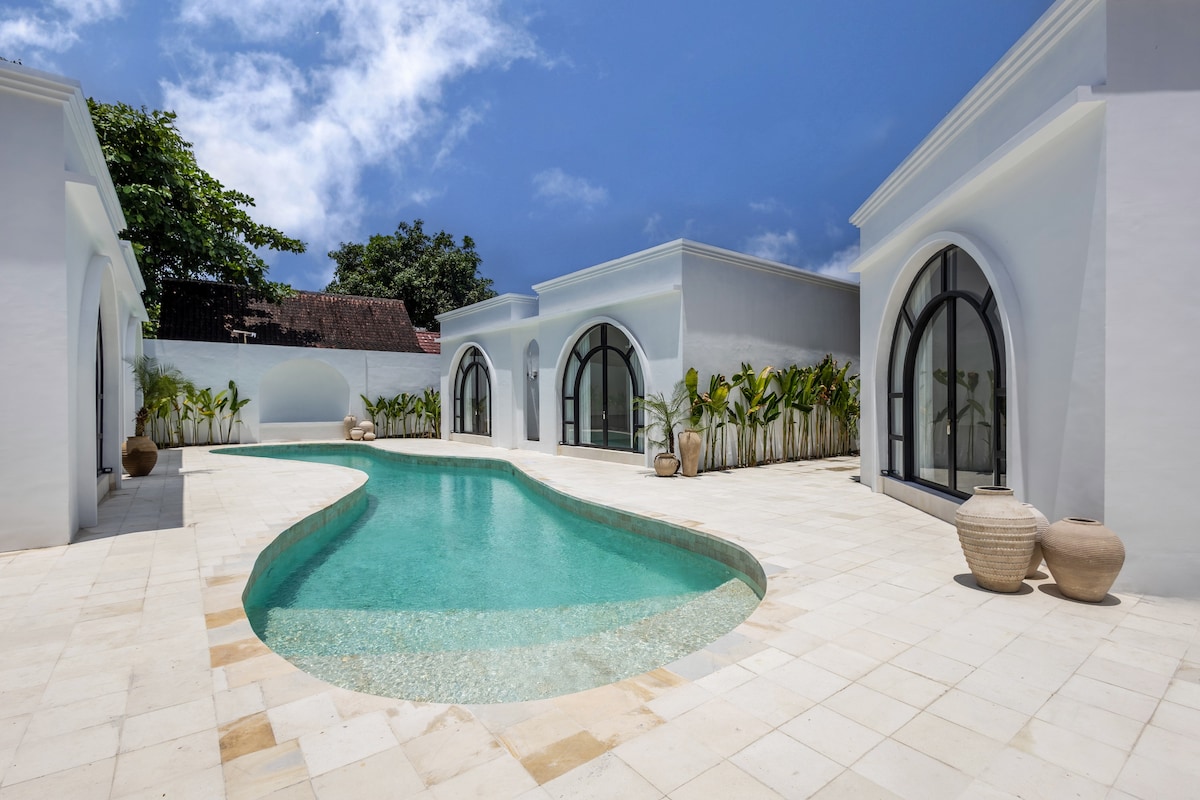 In the heart of town yet hidden away like a secret, this 6 room hotel is a serene oasis just 200m from the beach. Each space thoughtfully designed, blending the elegance of Moroccan design with the laid-back spirit of Bali. Lush textiles, the finest linens, and custom decor create a sense of calm, while the central pool invites slow mornings and sun-drenched afternoons. Enjoy a morning game of Bocce in the garden, or at golden-hour with a drink in hand. Escape the usual, discover the beautiful.