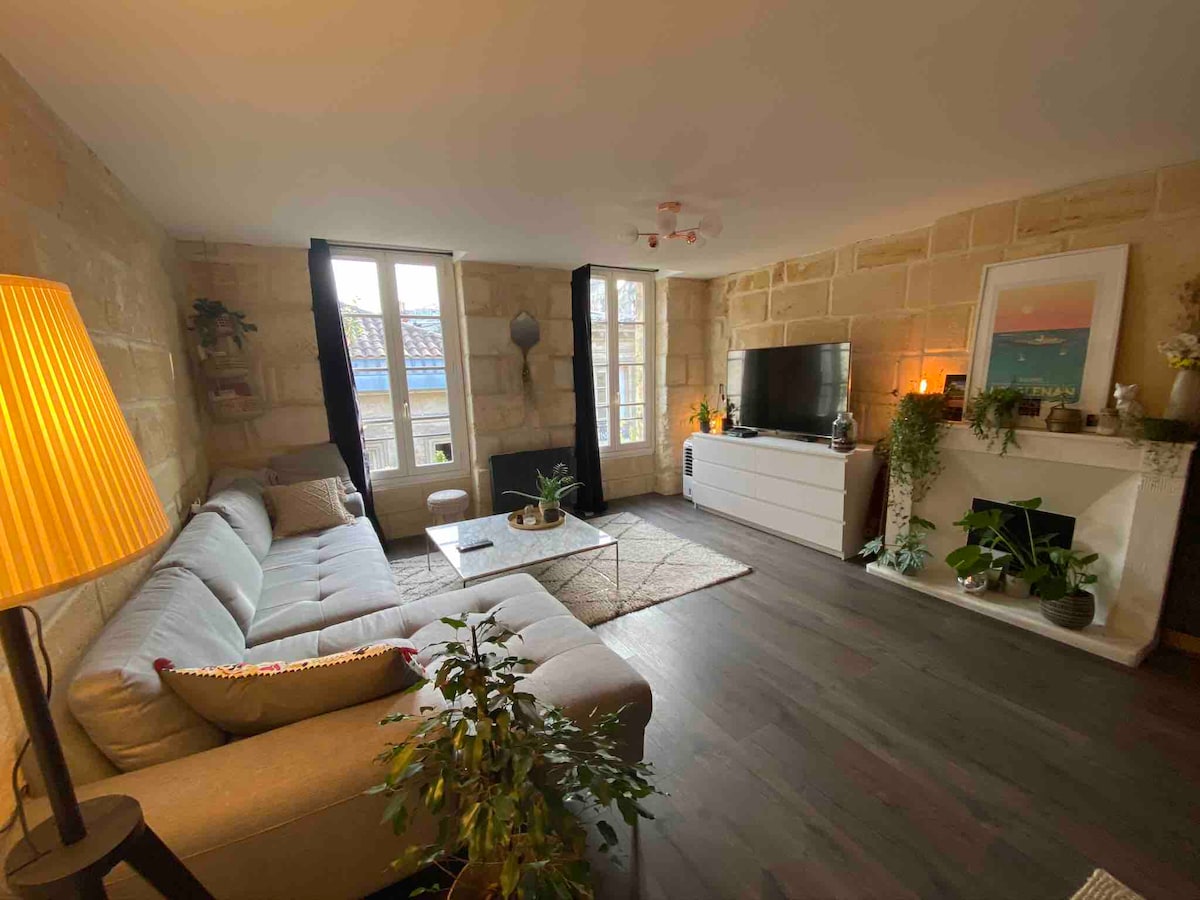 18th century apartment in area Sainte Croix & Saint Michel on quiet square. 3 minutes from riverside, five minutes from Saint Michel Tram C & D. Views of Hôtel de la Monnaie and Saint Michel tower. 70 m2 recently renovated furnished with antiques provides a modern-authentic Bordeaux experience. Kitchen fully equipped, large living and dinning room, high quality beds, spacious bathroom with bathtub and shower, free WiFi, TV, Blu-ray, and espresso machine.