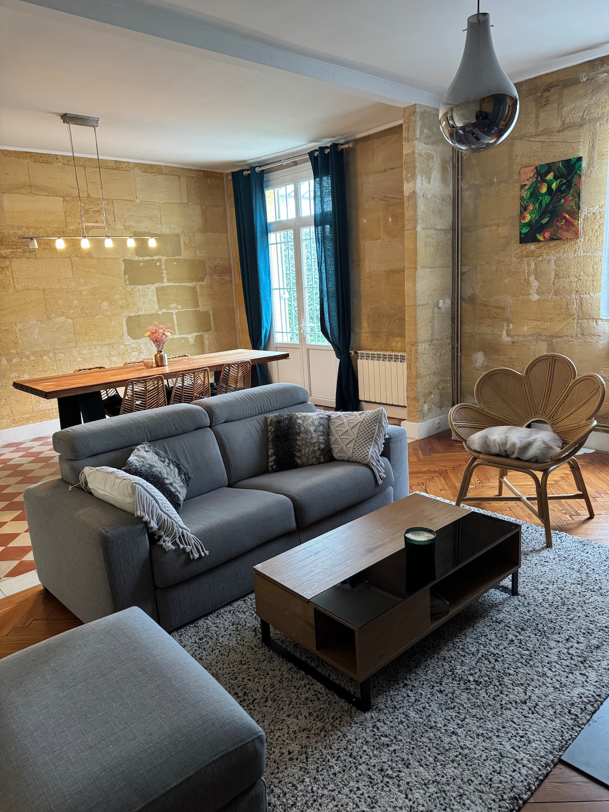 Ancien atelier de maître-verrier du 19ème siècle. Prestations ++ Maison située dans un des meilleurs quartiers. Commerces de qualité et transports. Lieu idéal pour visiter Bordeaux ET stratégique pour le vin et l' Océan. Pièce de vie 60 m2 volume++ fluidité exceptionnelle. 4 chambres, 2 salles d'eau. Sous-sol : bureau/chambre atypique :) Jardin exposé SUD avec accès rue, piscine au sel, salle de sport. Fête/bruit interdit, merci. Atypique/ Authentique/ Confort/ Modernité. Expérience garantie :)
