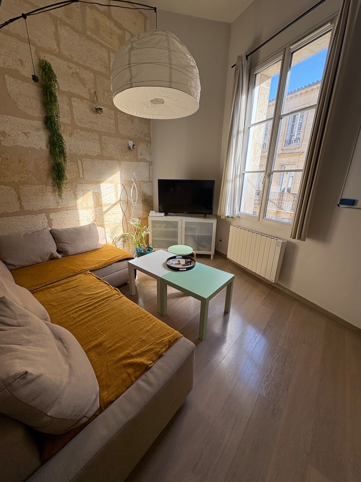 18th century apartment in area Sainte Croix & Saint Michel on quiet square. 3 minutes from riverside, five minutes from Saint Michel Tram C & D. Views of Hôtel de la Monnaie and Saint Michel tower. 70 m2 recently renovated furnished with antiques provides a modern-authentic Bordeaux experience. Kitchen fully equipped, large living and dinning room, high quality beds, spacious bathroom with bathtub and shower, free WiFi, TV, Blu-ray, and espresso machine.