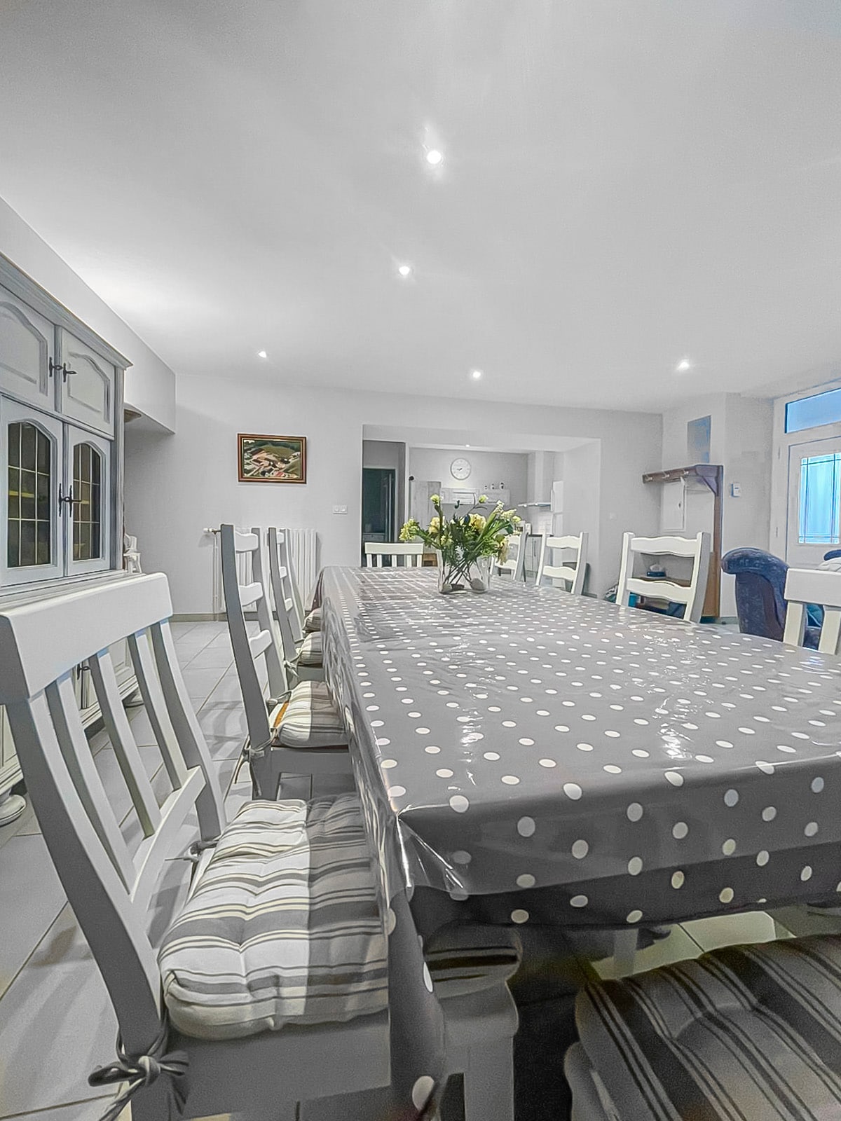 Maison d'environ 80m2 pour 4 personnes .maison comprenant cuisine, salon, wc au rez-de-chaussée ainsi qu'une salle de bain et 2 chambres à l'étage : 1 chambre avec un lit double et rangement et l'autre avec un lit double , un lit simple et rangement. Cour fermée. Equipement pour bébé sur demande (lit parapluie, chaise haute, table à langer ....)(attention logement dispose d'un escalier de douze marches qui est un peu raide) climatisation à l'étage les pièces les plus chaudes ( pompe à chaleur )