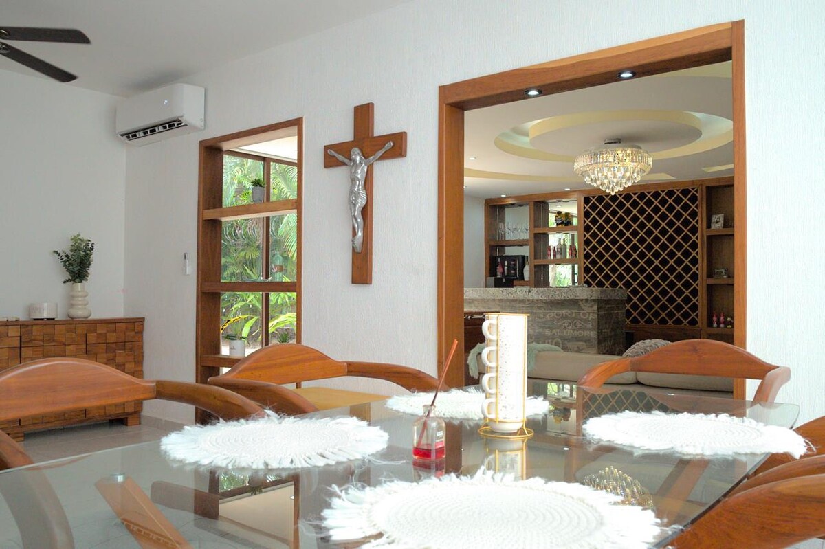 At Okó House, enjoy a spacious and comfortable space with your family. Its architecture features typical Mayan Chukum finishes with raw materials, making for unforgettable moments in one of the most exclusive areas of the Mayakoba complex with 24/7 security. A beautiful lake that we call a "cenote" in the area, exclusively for residents, and high-speed internet. Relax and surround yourself with trails, parks, and the majestic jungle that beautifies us.🏝️