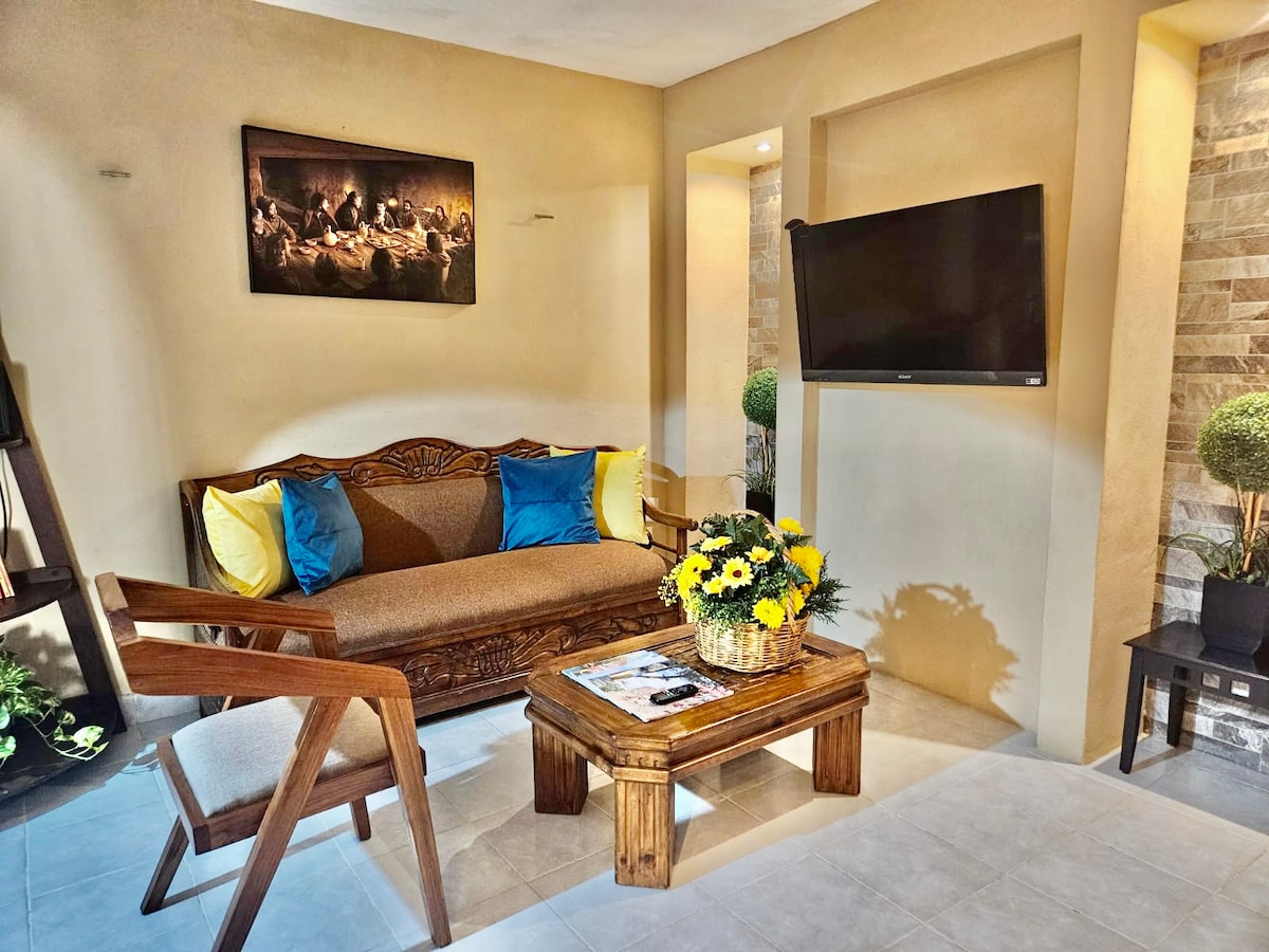Feel like a local inside of town, with friends or family enjoy this small city. We´re glad to having you in home. An equipm peacefull and relax place, with all the services close, 1min walking oxxo, gym, supermkt, drugstore, food, 10min from downtown and bus station. We are in front of a nice park.Use the kitchen we offer you purified water, tea, coffee, a coffee maker, fridge, blender, gas stove, microwave, toast, cookware. Enjoy our streaming service. Welcome!