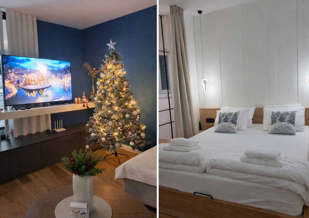 Luxury 2BR/2BA on the 16th floor of the iconic Limak Diamond, in Skopje City Center. Enjoy panoramic Vodno Mountain views, designer furniture, fast Wi-Fi, AC, Smart TV, elevator, and a fully equipped kitchen. Both bedrooms offer comfy beds and storage; two elegant bathrooms with premium finishes. Secure free parking on site. Walk to Macedonia Square, Old Bazaar, cafes, shops, and nightlife - perfect for business trips, families, and friends seeking style, comfort, and a prime location.