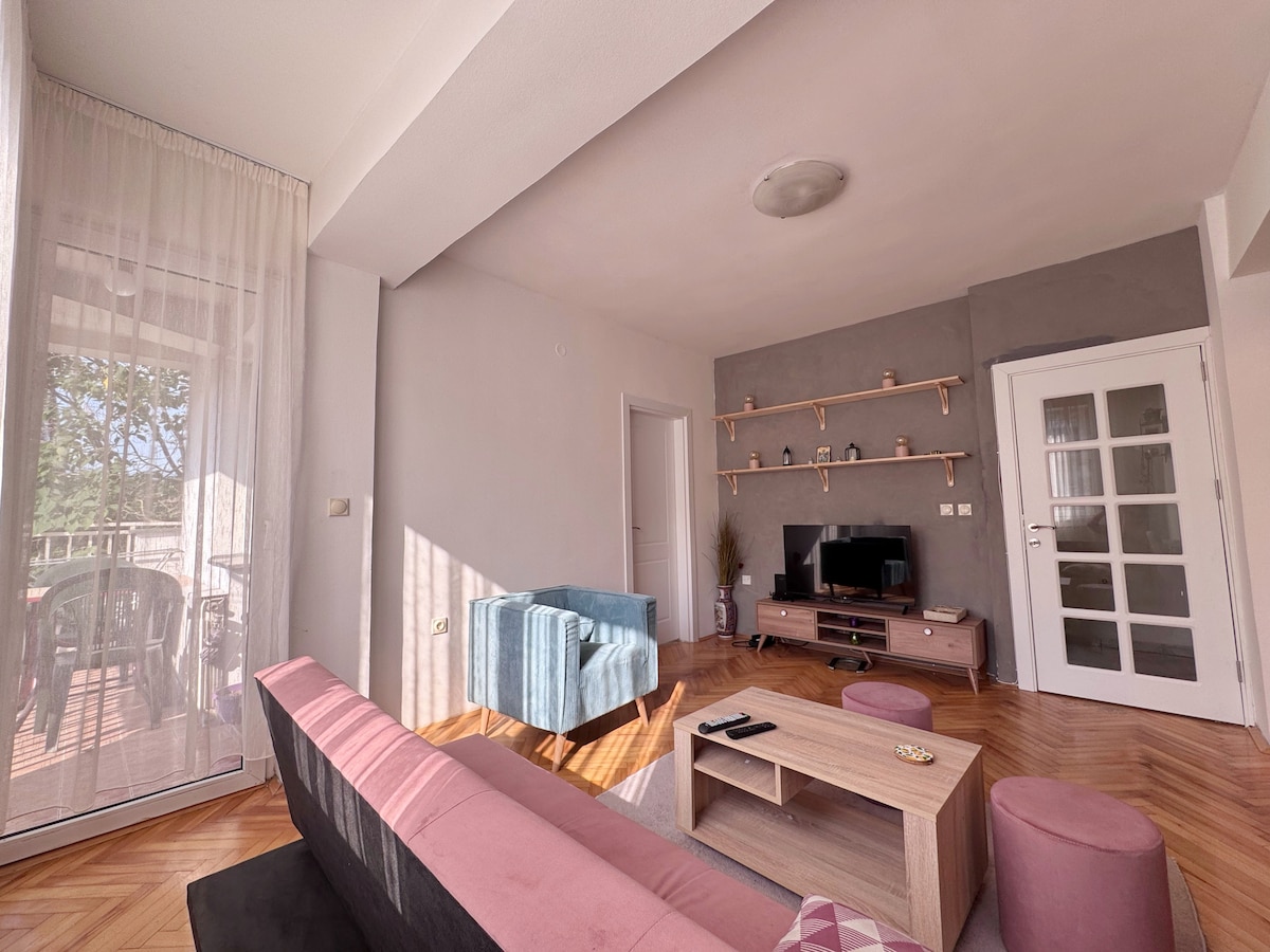 Welcome to our unique apartment in the heart of Skopje’s lively Debar Maalo district -a central area known for its charming streets, trendy cafes, bars, and some of the city’s best restaurants, all just steps from your door. This spacious apartment is thoughtfully designed for comfort and convenience. With its modern, cozy design, central location, and all the comforts of home, this apartment is the perfect base for your Skopje stay — whether you're here for work, exploration, or a bit of both.