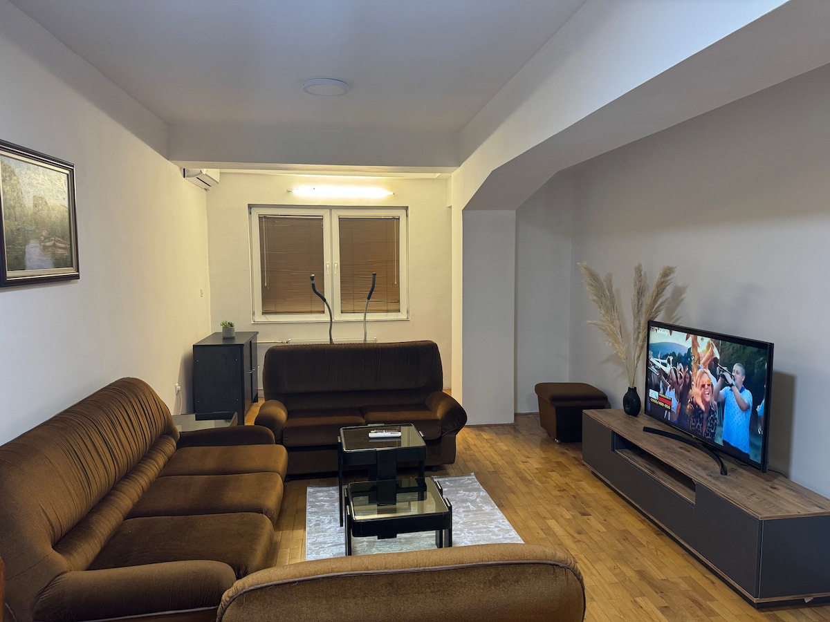 Welcome!!Stay in comfort and convenience in this cozy, fully equipped apartment. Located 5-10min walk from main city square. Enjoy fast free Wi-Fi, air conditioning, a fully equipped kitchen and everything you need for a relaxing stay. The apartment is perfectly located for exploring the city. You’ll find a supermarket, bars, cafés, a hospital, and a 24/7 pharmacy just 100 meters away.Popular attractions like Vodno Mountain,Matka, the Old Bazaar, and the Skopje Fortress are also easy to reach.