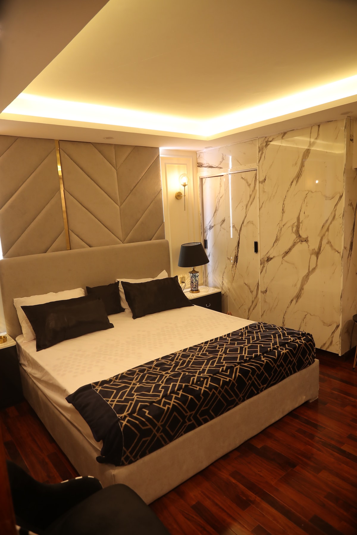 🛏️ King Bed & Private Balcony with Giga view. 📺 55” Smart LED & 30 Mbps WiFi. 🍽️ Modern kitchen with premium appliances. ❄️ Inverter ACs & 💨 automatic air-fresheners. 🔐 Digital locks & elegant décor. 🏙️ Above Zeta Mall, steps from Giga Mall. 🌄 City & hill views. Perfect for families, couples & corporate guests. 🪪 CNIC required (18+). 🚭 No smoking/events. ✅ Book now for luxury & serenity.