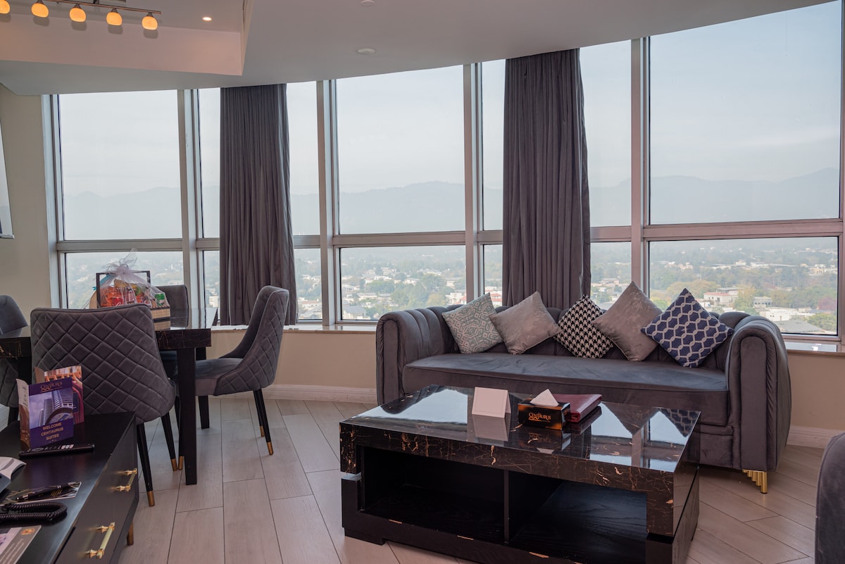 Designed with great care by an interior designer, The Black H comes with a spacious lounge and bedroom, huge 60" LED TV, 10-seater sofa, fully equipped kitchen and a distinctive decoration piece – an ibex's skull (Ethically sourced) – adding a rustic charm to the space. It is located in Bahria Heights 1 Block D, one of the most premium living standard maintained by Bahria Town. All major restaurants and cafes are close-by and building has 24/7 security