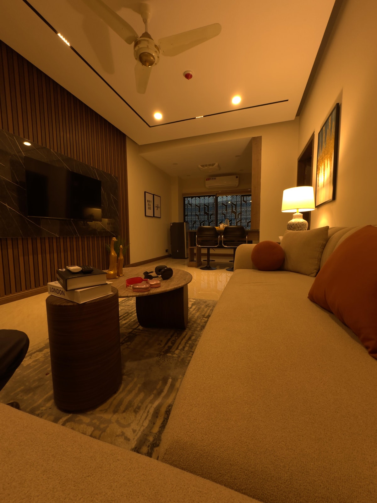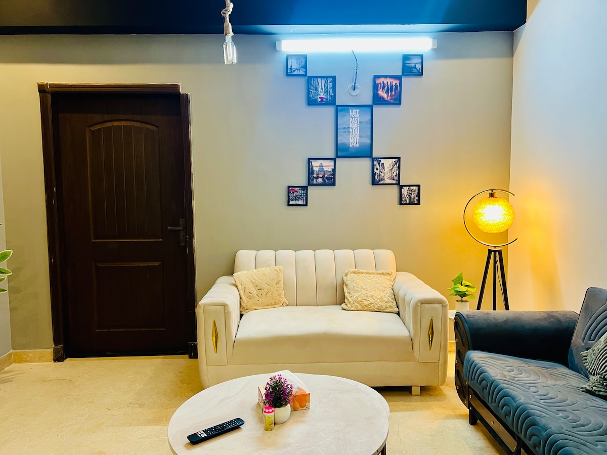 Discover our cozy one-bedroom apartment, perfectly located in the heart of Islamabad. Ideal for Families, couples, solo travelers, or business professionals, this stylish space offers comfort and convenience for your stay. ► Modern interiors: spacious bedroom, sleek kitchen, cozy living area. ► Building features Coffee Beans & Brim – dine-in or takeaway!. ► Amenities:High Speed Wi-fi, Free Parking, garden, 24/7 security. ► Family-friendly, centrally located – everything at your doorstep