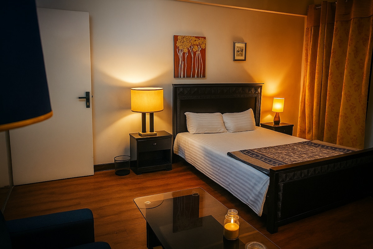 Experience modern, dark-toned elegance in the heart of F-11 Markaz, Islamabad. The Slate Suite is a refined one-bedroom apartment designed for guests who appreciate clean aesthetics, calm surroundings, and a prime central location. Ideal for professionals, couples, and solo travelers, this thoughtfully curated space offers the perfect balance between city convenience and private comfort.