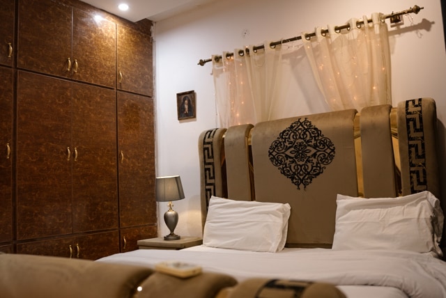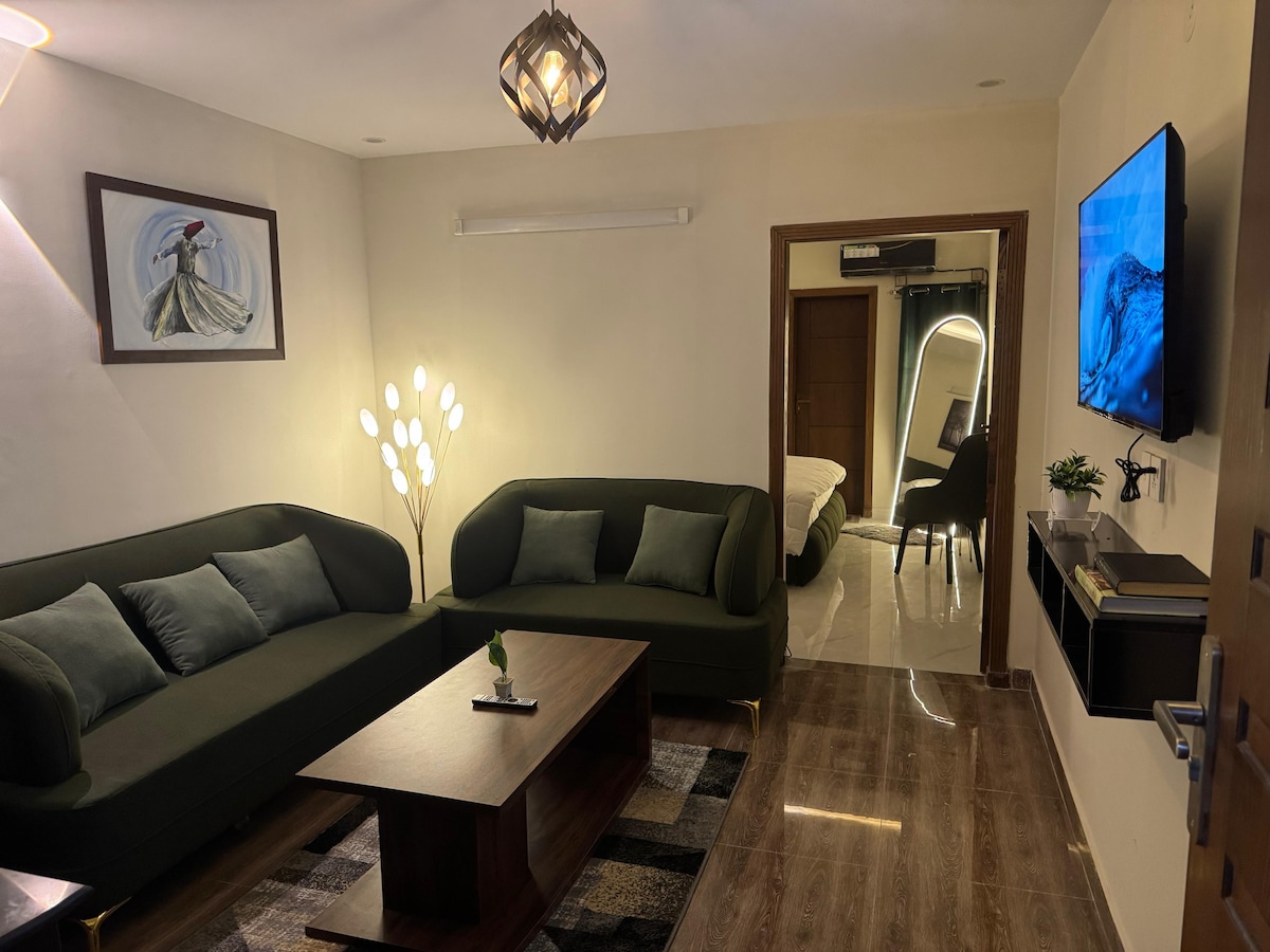 Discover our cozy one-bedroom apartment, perfectly located in the heart of Islamabad. Ideal for Families, couples, solo travelers, or business professionals, this stylish space offers comfort and convenience for your stay. ► Modern interiors: spacious bedroom, sleek kitchen, cozy living area. ► Building features Coffee Beans & Brim – dine-in or takeaway!. ► Amenities:High Speed Wi-fi, Free Parking, garden, 24/7 security. ► Family-friendly, centrally located – everything at your doorstep