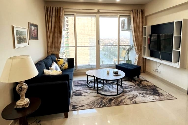 Experience elite living at Wall Street’s flagship 3-bedroom luxury apartment, featuring breathtaking panoramic Margalla Hills views. Designed for families, corporate and premium guests, this spacious residence offers refined interiors, hotel-grade comfort, high-speed Wi-Fi, a fully equipped modern kitchen, and spotless cleanliness. A true signature stay — among the finest luxury apartments in Islamabad.