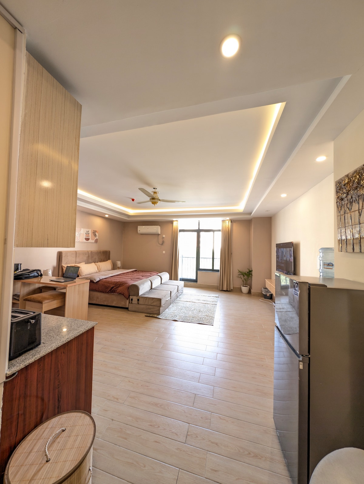 Welcome to The Minimalist 3, a stylish, purpose-built apartment perfect for solo travelers or couples. This compact space features a cozy living area, a fully equipped kitchenette, and a king-sized bed. Located on the ground floor with private access, the apartment offers convenience and privacy. Enjoy secure entry with a smart keypad lock and uninterrupted power with a UPS, all in the vibrant F-10 Markaz, Islamabad.