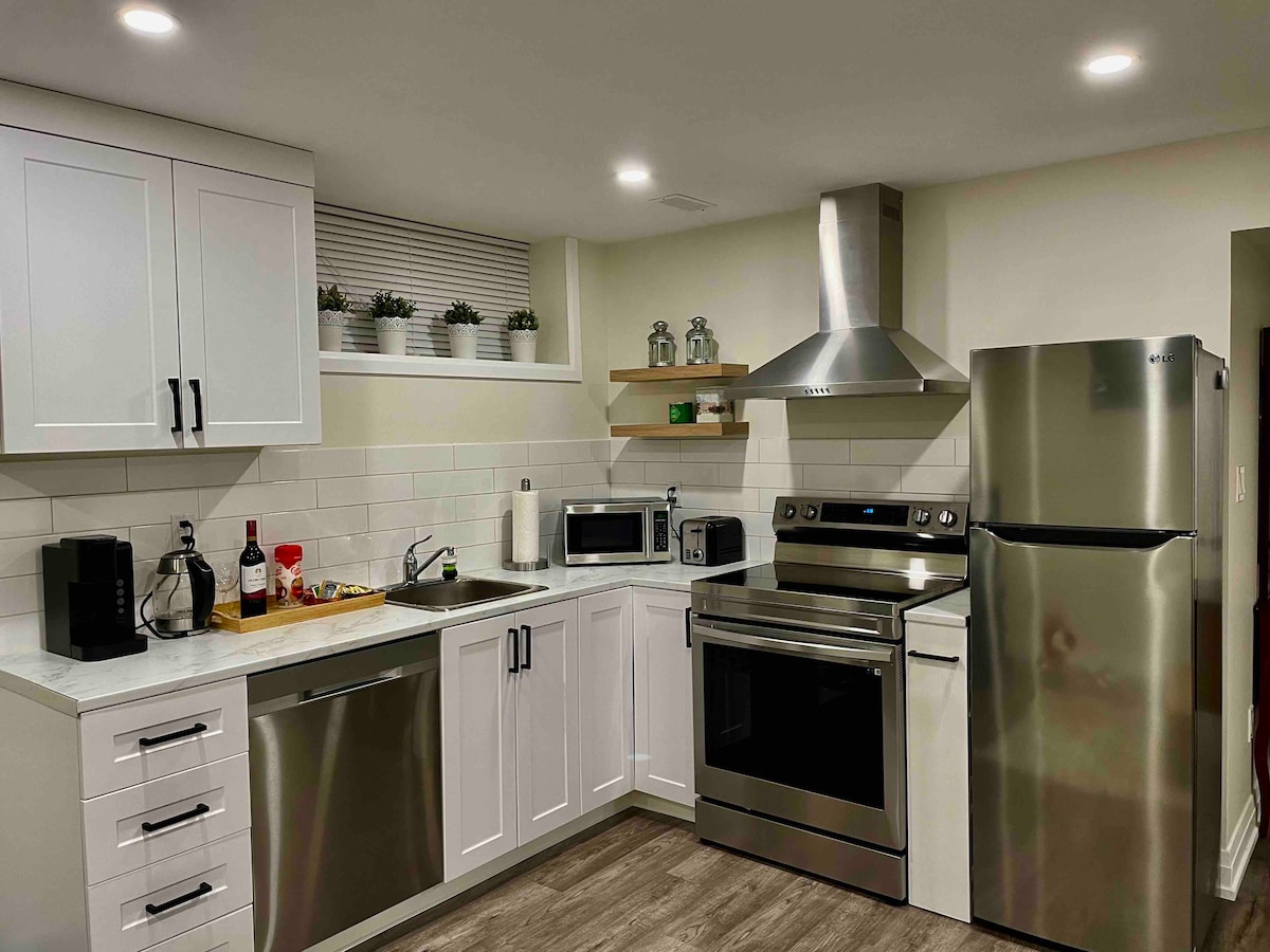 Come and enjoy our private, spacious, and bright 1 bedroom guest suite located in the West Barrie. Enjoy the private entrance and the entire basement unit. Walking distance to Ardagh Bluffs, trails, and bus stop. 10 min drive to HWY 400, shopping areas, and Lake Simcoe. 15 min drive to Snow Valley Ski Resort. - Free parking spot - Free 200 mbps Wifi - Private entrance Kitchenette, Fridge/Freezer, Stove/Oven, Microwave, Toaster, Dishwasher, Laundry, Flat iron, closets - No Smoking - No Pet