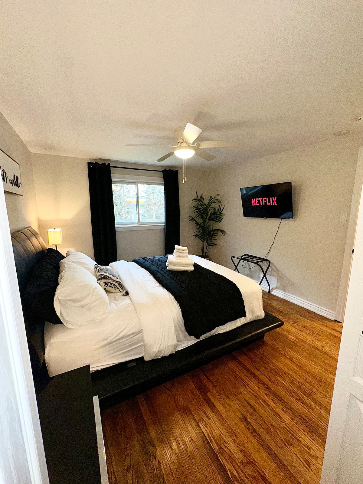 Make yourself at home in our cozy yet spacious basement suite. Just steps from Royal Victoria Hospital & Georgian College, Access to HWY 400 nearby, you're also minutes to downtown Barrie's scenic waterfront. A clean, modern space designed for convenience — ideal for short or long stays. Your cozy getaway awaits Key Highlights >In-suite laundry >Self-check in >Smart TV with Netflix, Youtube & PrimeVideo >Queen bed >Equiped kitchen with all necessary cooking utensils >Wifi extender for fast wifi