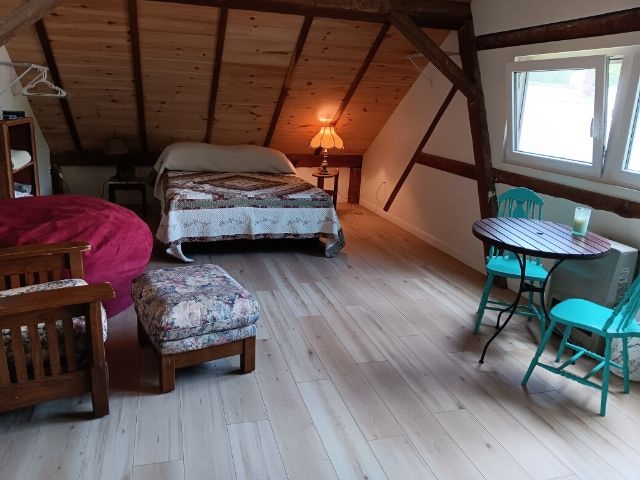 Forget your worries in this lovely and serene space. Located on a farm with acres of land, trails and starry skies, you will enjoy kicking back in an open design guest house. Living and dining in front of a wood burning fireplace with a fresh and bright kitchen immediately at hand. The guesthouse has king & queen beds with a nicely finished bathroom. A quiet escape that is also close to amenities and adventures in Vermont, Greenwich and Saratoga Springs. We support diversity, equity & inclusion.