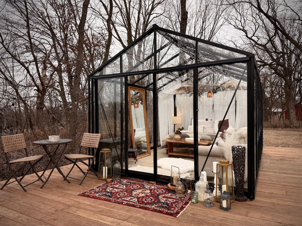 Star Gazing Glass House 4 Season with Hot Tub