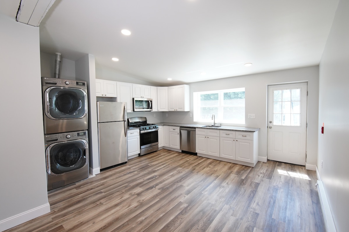 现代套房,带壁炉、后院、免费洗衣