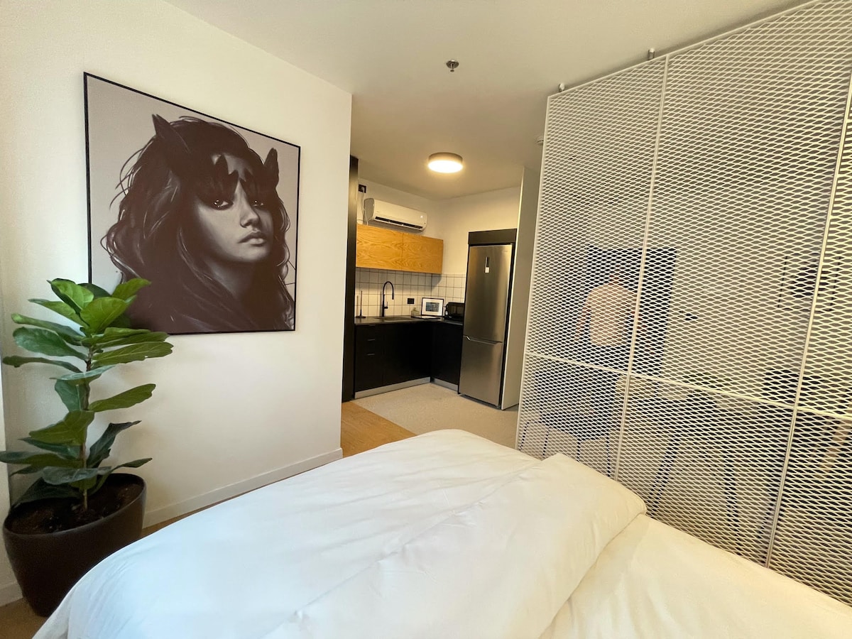 This cozy 22SQM or 44sqm English Basement Apartment, suitable for couples or business travelers, looking for an urban experience. This apartment features a fully equipped Kitchenette, coffee machine, Queen-Size bed, working desk and a bathroom with a walk-in shower, robes and slippers.