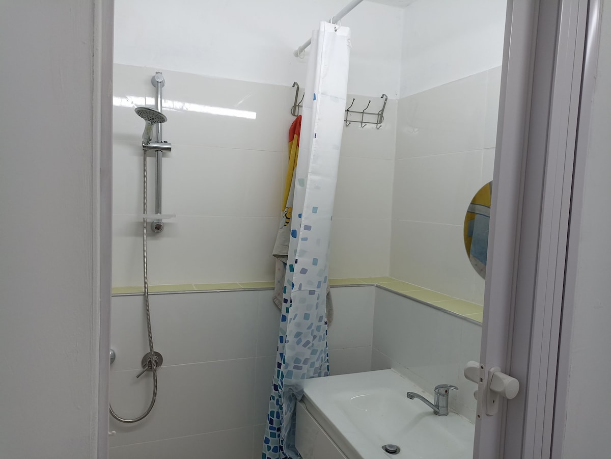 Our place is situated in our 250 sqm garden with an outdoor sitting place. The space is 9*3 metres, 27 sqm, located in a quiet neighberrhood with an easy access to go everywhere. There is a pizza, a supermarket and a grossery store near by. A wide park is in a minute walking distance for jogging and relaxing. Herzliya city center is in a 5 minutes walking distance. The place is decorated as a surfers cabin, the bed mesures are 140/190 cm.