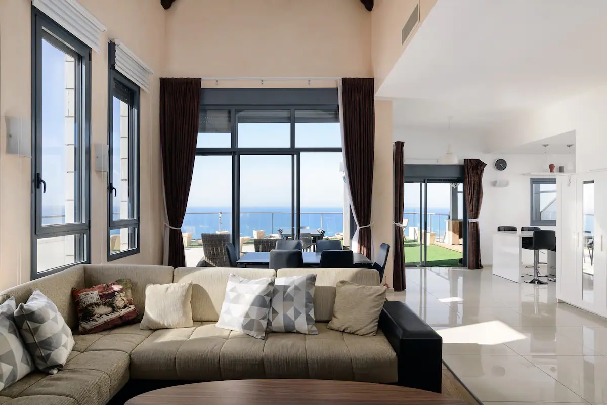 Newly renovated, designed beautiful 2-floor Penthouse call to beach view studio suite locates 2 minutes from Gordon beach and right off hotel area (Sheraton, Hilton). All 142 sqm has fully furnished and prepared for You to spend a wonderful vocation on the primary location of Tel-Aviv, in the city that never sleeps. Popular walking street Ben Yehuda with many good restaurants and crazy nightlife is 2 min by walking. Dizengof shopping centre and Carmel market are also the step away.