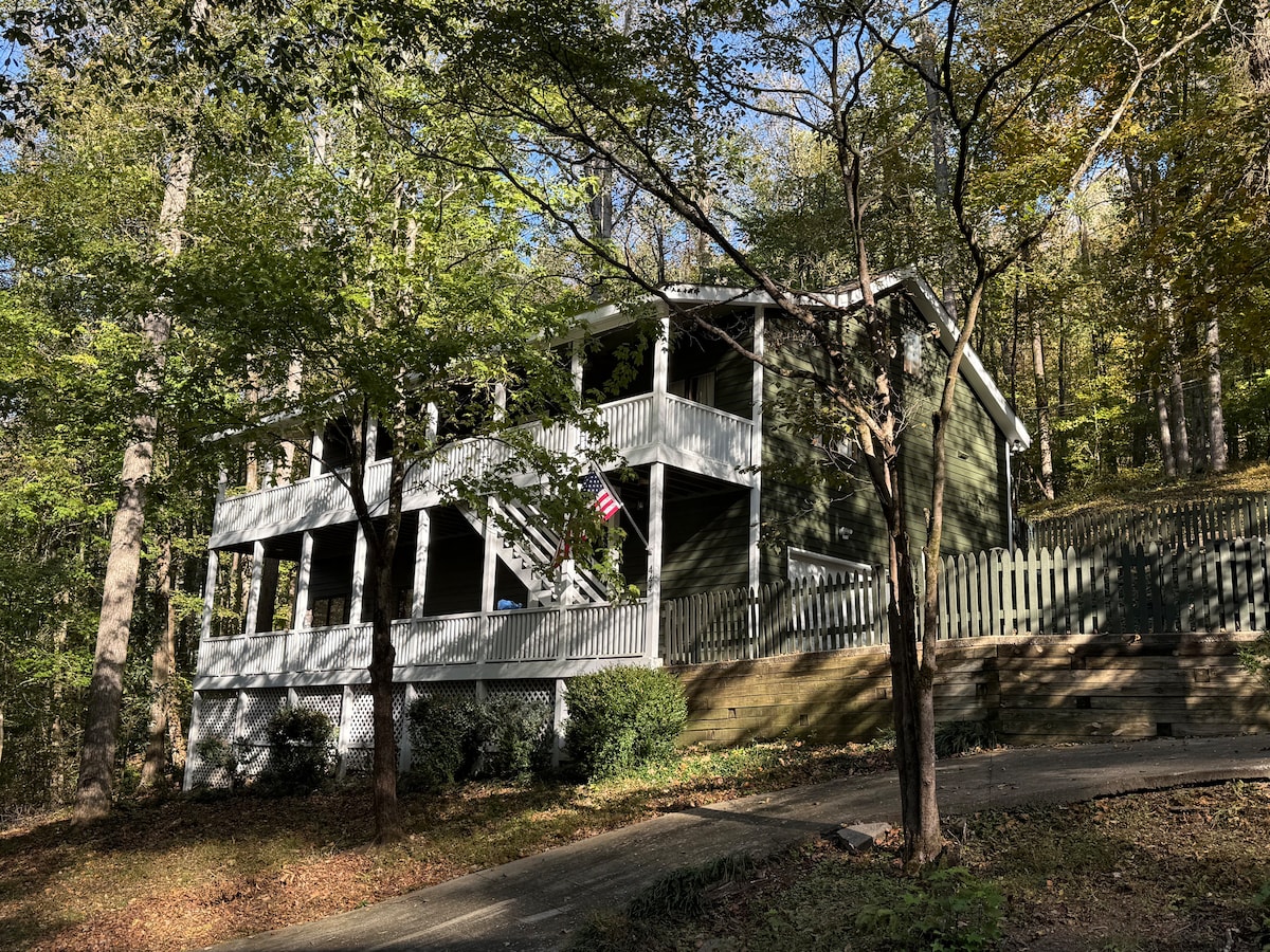 We're excited to share the experience of this true Hideaway with you! As one of the closest properties to Hurricane Marina on the lake, we are also walking distance to the water, which is a rarity on CHL! Our home offers a great outdoor living experience, 2 wrap around porches, swings, screened in room, hot tub, immersive fire pit, 3 bedrooms each w/ full bath. Walk to the beaches, playground, visit Hurricane Marina for restaurants, music, & boat rentals! PLEASE READ ENTIRE LISTING-MUST BE 25+
