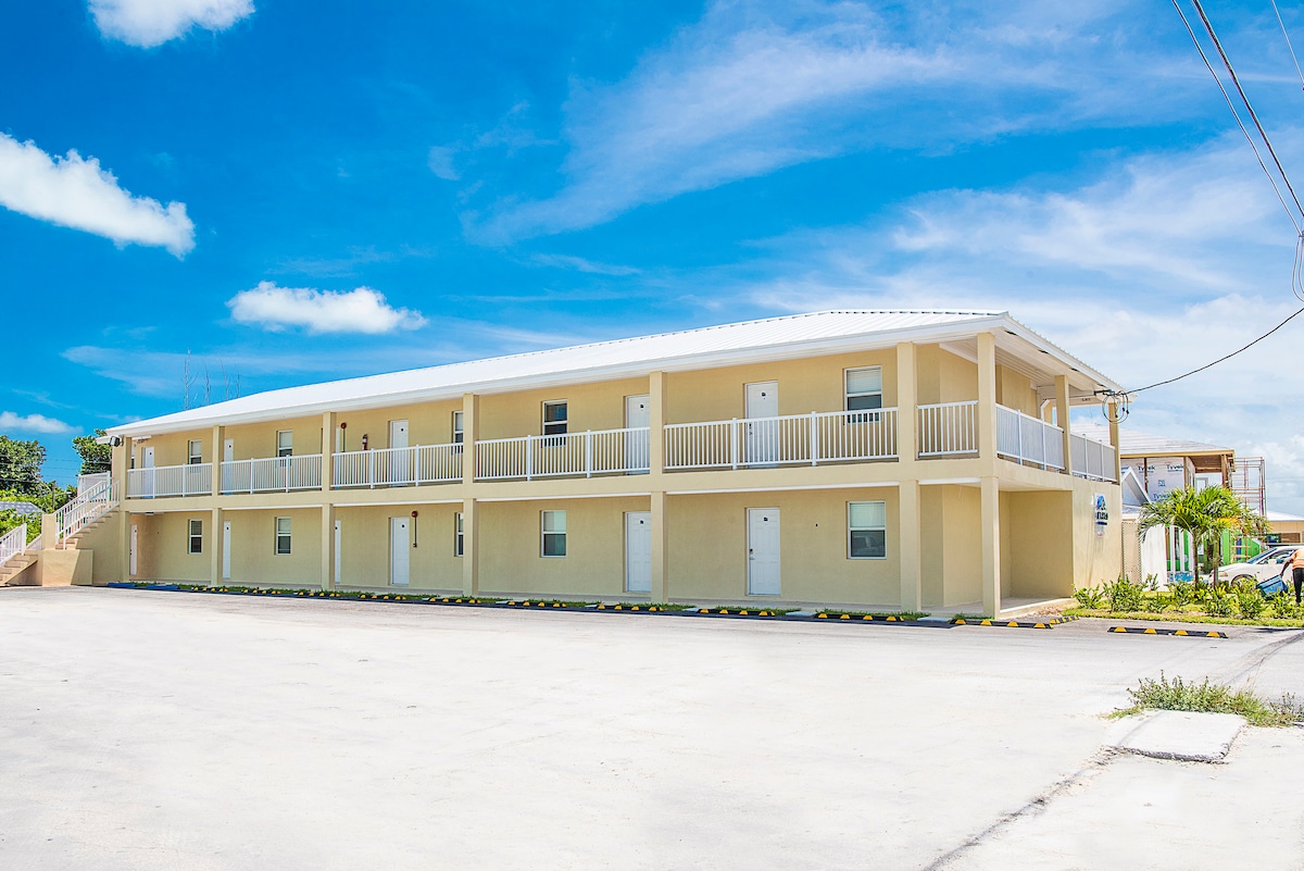 Our luxurious fully finished one bedroom one bathroom is located on S.C Bootle highway adjacent to the Treasure Cay Airport. It has a soothing island atmosphere, a modern full kitchen with granite countertops. Central a/c throughout entire unit with WiFi and Cable TV.