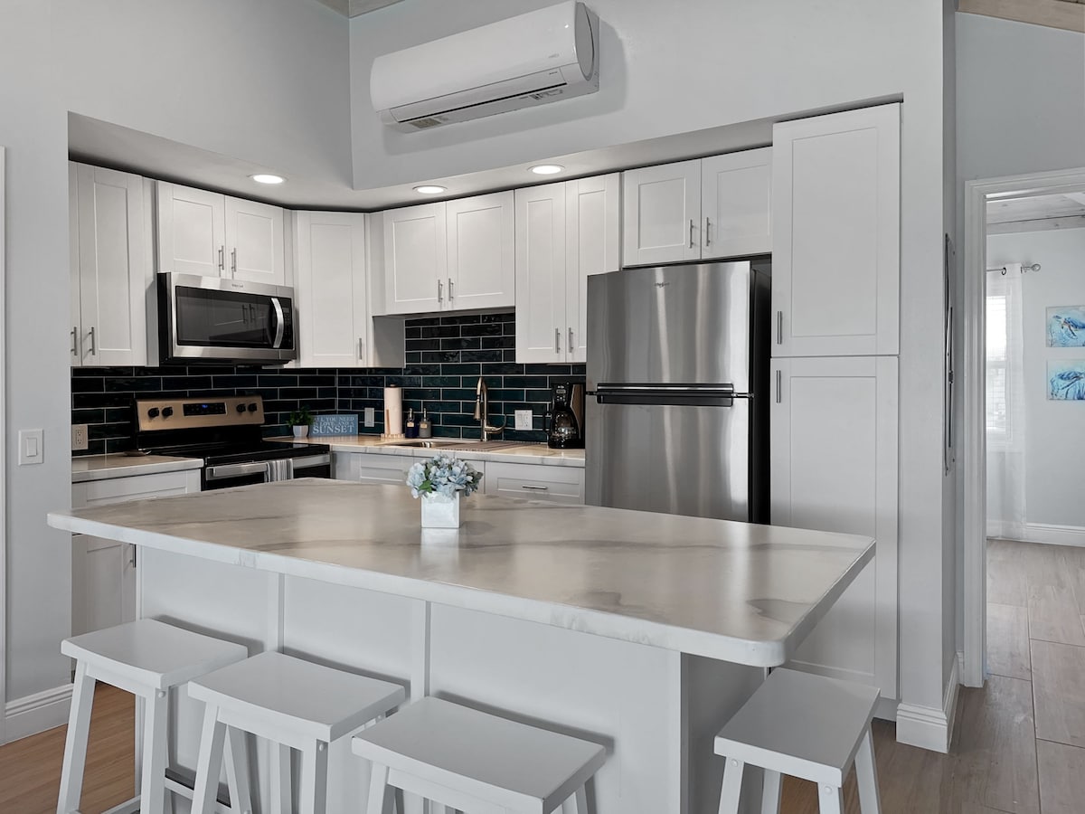 This Treasure Cay Abaco Beach Villa has been fully renovated and updated after hurricane Dorian with a modern open concept look and feel. This spacious villa has new central AC system, new stainless steel appliances, granite counter tops and large showers. Very short distance to the beach and pool. Sleeps seven with 1 Queen bed, 3 twin beds and 1 Queen sofa sleeper.