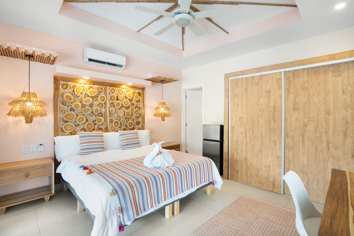 Escape to a thoughtfully curated king suite designed just for two. Natural wood accents, cozy lighting, and cool A/C create the perfect vibe for restful nights and slow mornings in paradise. Lounge by the sparkling resort-style pool, challenge each other to arcade games or mini golf in the Spaceship-themed game room, and don’t forget to visit the exotic birds in the sanctuary. With three soft-sand beaches and great local dining just minutes away, your dream Costa Rica vacation comes to life here