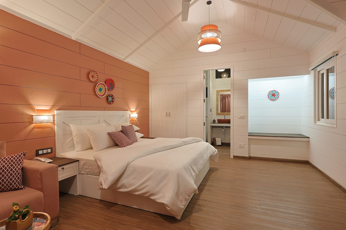 Punjab Village Farm: This independent cottage is located within a beautiful farm stay, just a 90-minute drive from Amritsar city. Nestled in the picturesque countryside, the property offers an authentic experience of rural Punjab. It provides a tranquil escape from the noise of busy cities and crowded tourist spots. The cottage is designed in a traditional mud house style and features well-furnished interiors with high-quality furniture, colonial-style lighting, and modern bathroom fixtures.