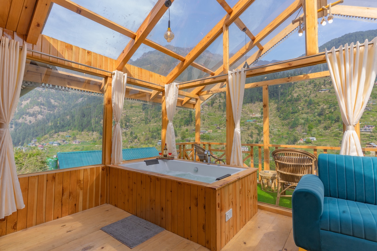 吉布希(Jibhi)浪漫度假屋 | 带景观的按摩浴缸
