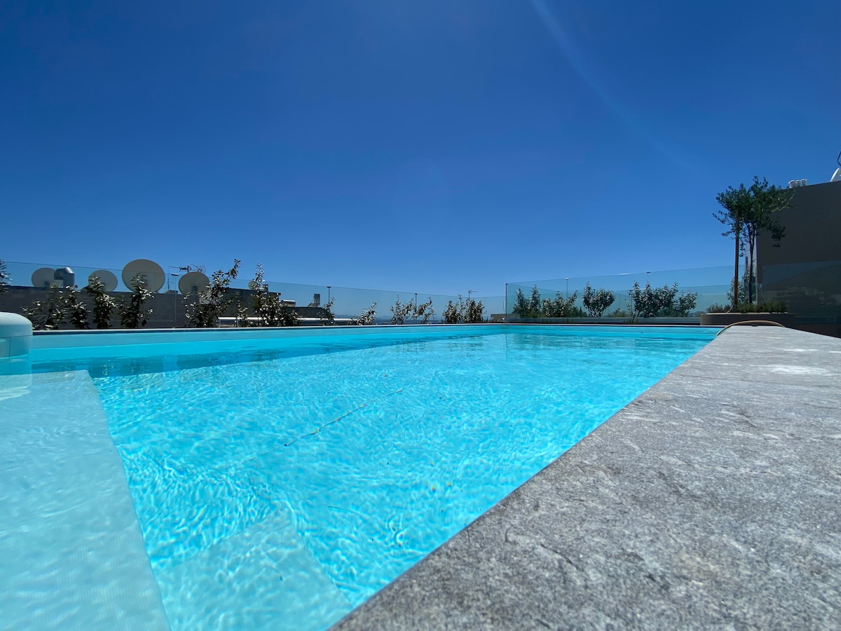 At "Ma Maison Lofts" you will feel at home. Downtown Penthouse N° 5 is a unique 90m² Loft, with a private heated pool on a 50m² exclusive roof garden overlooking Acropolis and Technopolis, a breath away from the archaeological sites of Athens, 50m from the Kerameikos metro station. Plunge into the pool with the amazing views, lie down on the lounger and drink your cocktail, sleep on Egyptian cotton sheets, relax in the sofa watching SAT TV. It would be our honor to host you. Yannis & Rena