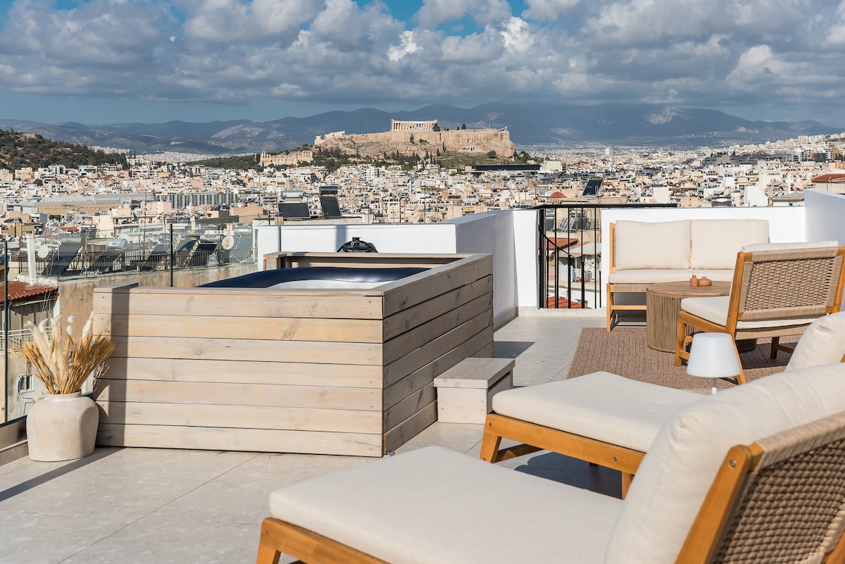 雅典市中心豪华阁楼,享有壮丽的雅典卫城景观和按摩浴缸