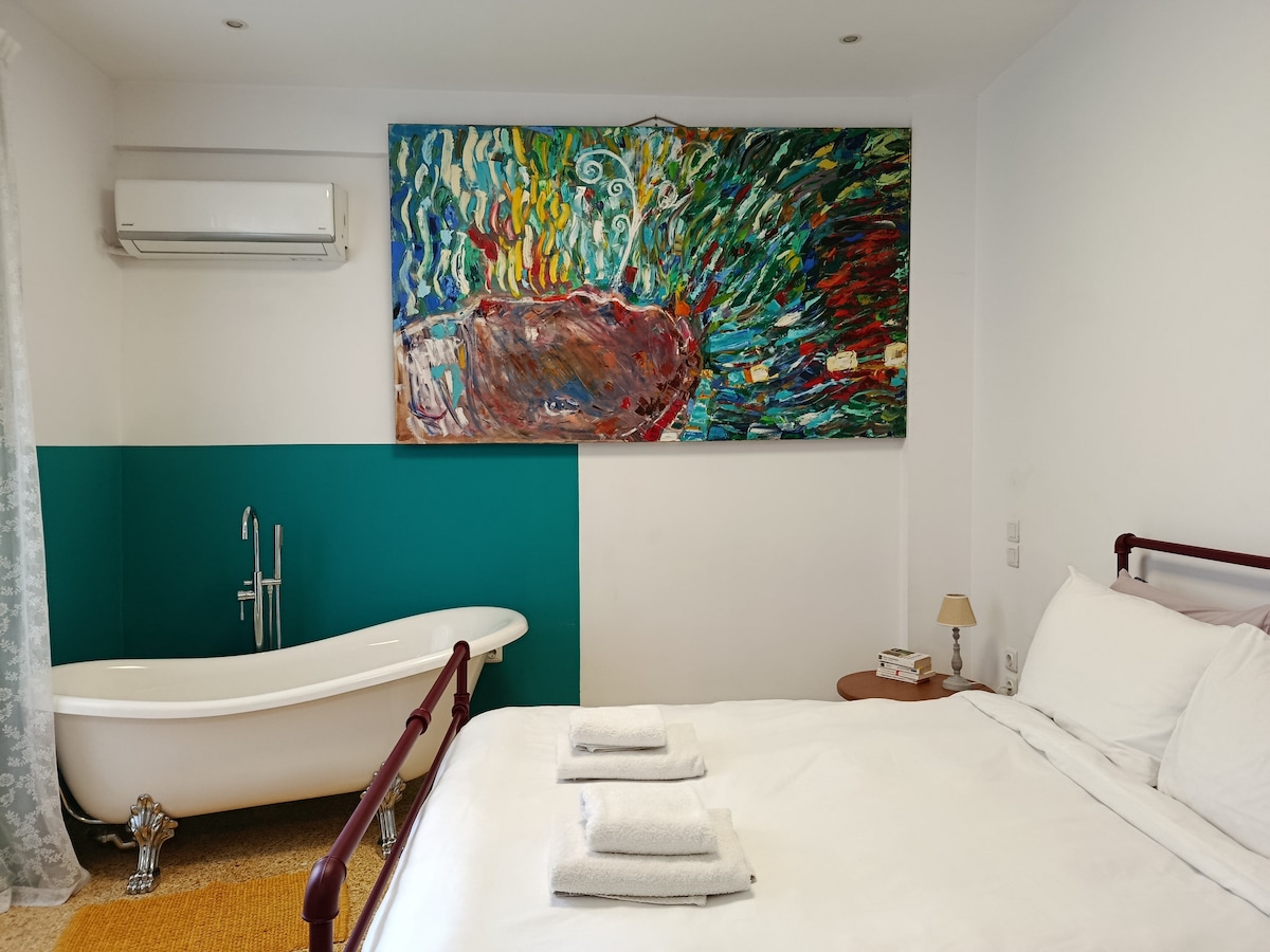 This unique loft with a vintage aesthetic is located in the heart of Athens and offers a combination of modern comfort and retro charm. Access to the city's most famous spots, from archaeological sites to cafes, bars and shops, is very easy, as they are just a few minutes' walk away. The place is fully equipped for a comfortable stay, while maintaining the romantic and nostalgic atmosphere of bygone times.