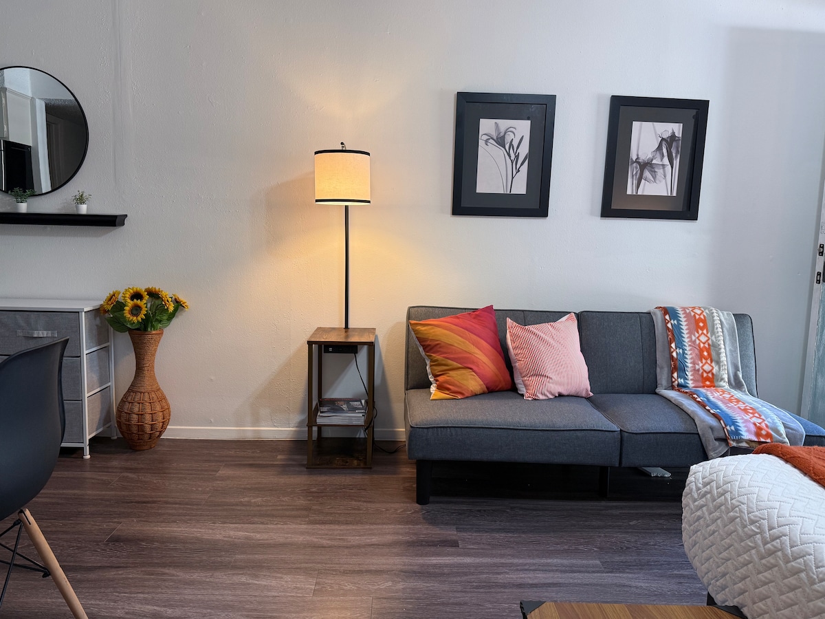 This is a trendy, comfortable and convenient guesthouse for spending a fun-filled getaway in East Austin. Our casita is walkable to many of Austin’s hottest spots, including the Moody Center: Austin’s largest music venue. Built in 2020, our guesthouse features a lofted queen-sized bed, a couch with a pull-out twin mattress, an elegant walk-in shower, smart TV, and small appliances including fridge-freezer, microwave, and Nespresso coffee maker. Relax in style as you explore our fun city!