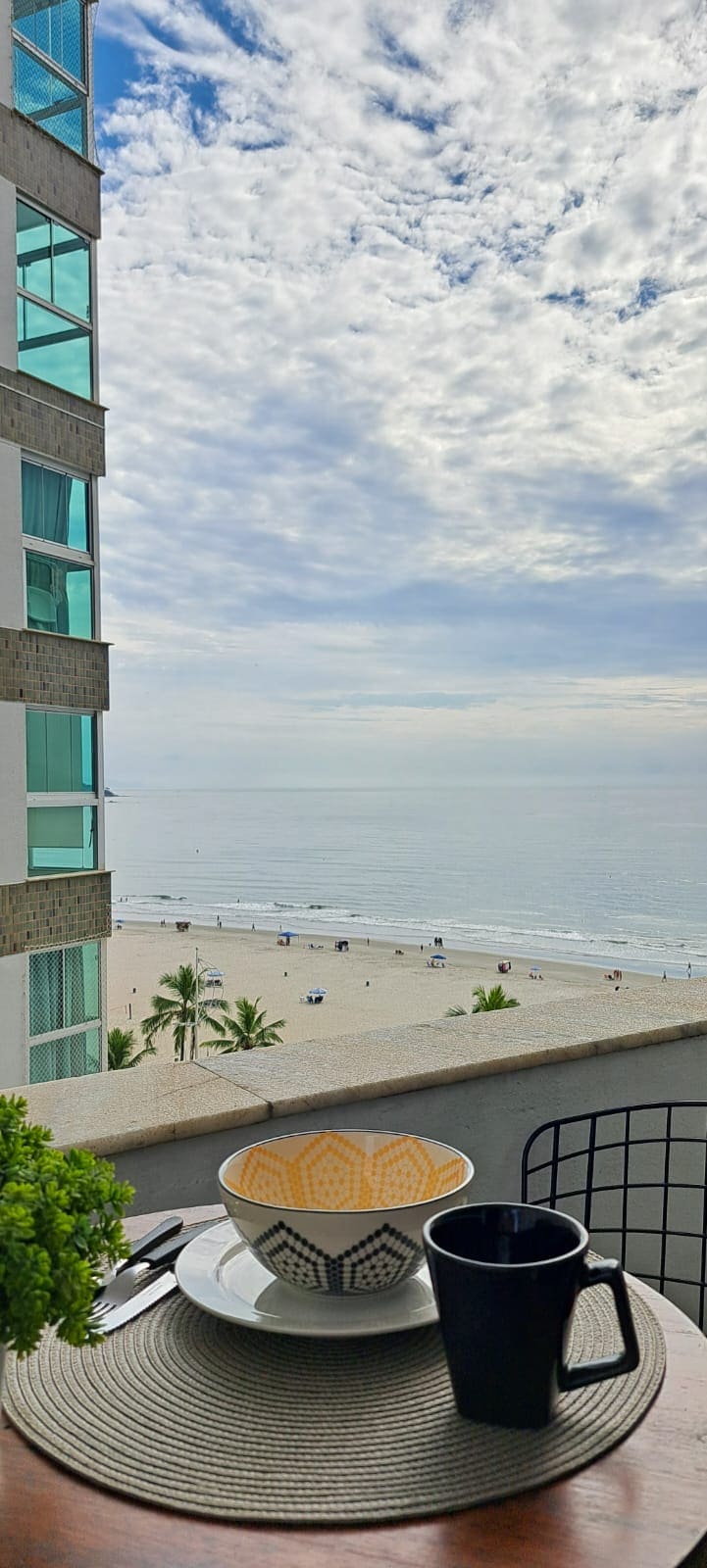 Lindo Apartamento a 30 metros da Praia, com Vista para o Mar e Cidade, amplo, ventilado, climatizado, equipado, REDE DE PROTEÇÃO nas janelas e na sacada.Sala de estar com Tv, Sala de Jantar com churrasqueira, Cozinha com espaço para refeição, espaços amplos e integrados permitindo interação entre os hóspedes. A Sacada tem vista para o Mar e cidade, com mesa e cadeiras, oferecendo momentos incríveis: tomar café, happy hour, trabalho. Ar condicionado nos quartos. 2 GARAGENS INDIVIDUAIS