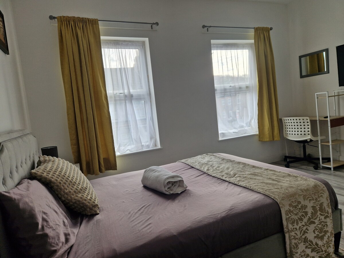 Stylish refurbished apartment in Bedford, ideally located close to the town centre and transport links, with fast trains into London. Sleeps up to 4 guests with a comfortable bed and sofa bed. Enjoy Netflix, high-speed Wi-Fi, and a fully equipped kitchen for short or long stays. Perfect for contractors, business travellers, couples, families, and holidaymakers. Close to shops, restaurants, parks, and the river — an ideal base for work or leisure. Photos for illustration purposes