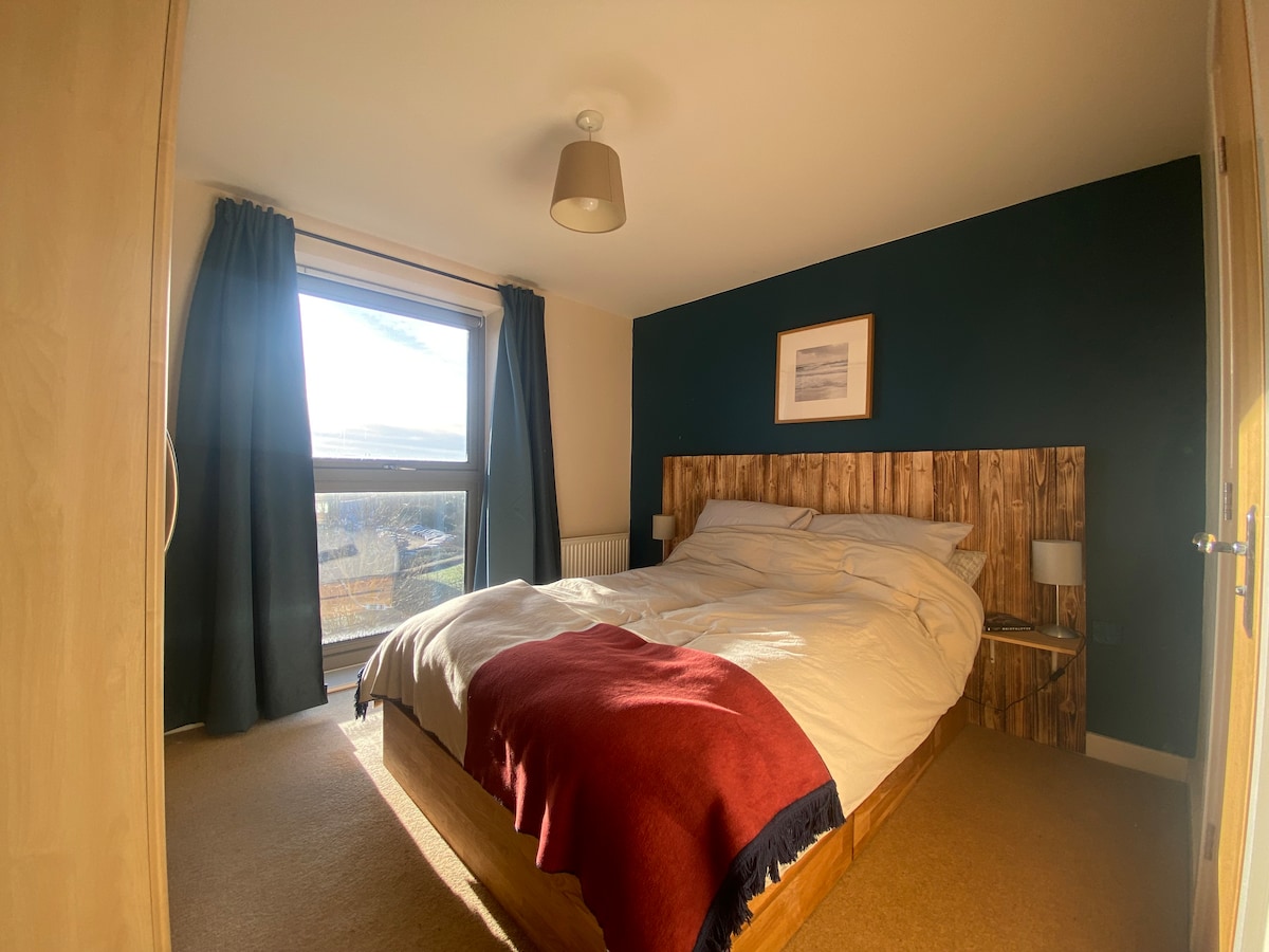 Modern 1-bed flat in Bedford’s historic Britannia Iron Works, with river views and two private balconies. Features include a fully equipped kitchen, smart lock entry, high-speed WiFi, lift access, and free secure private underground parking (Max Headroom 1.9M- 6”2”). Ideal for 1 guest, others welcome with own bedding. Secure entry via passcodes to building, car park, and flat. A stylish, convenient base near the town centre, train station and hospital.