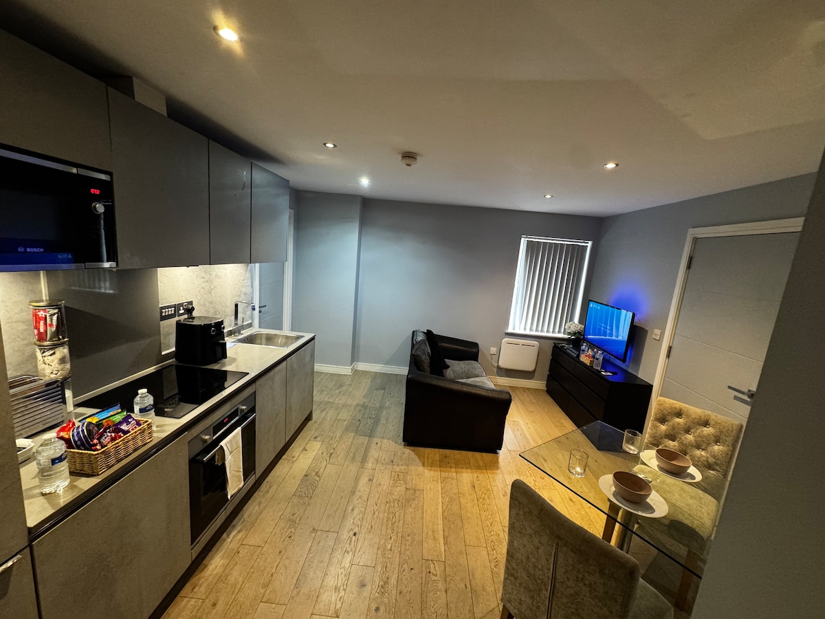 Welcome to your 1 Bedroom Apartment Unbeatable Location: •5-min walk to Mall •8-min walk to Luton Train Station •Quick access to Luton Airport •Free on-site parking Inside the Apartment •Bright open-plan living area with sofa+Smart TV •Fully equipped kitchen •Dining table+workspace •Comfortable bedroom quality bedding •Modern bathroom+fresh towels •Fast WiFi •Self check-in Ideal For •Contractors •Airport stays •Business guests •Couples •Solo travellers •Long-term stays(discounts) Enjoy 🧡