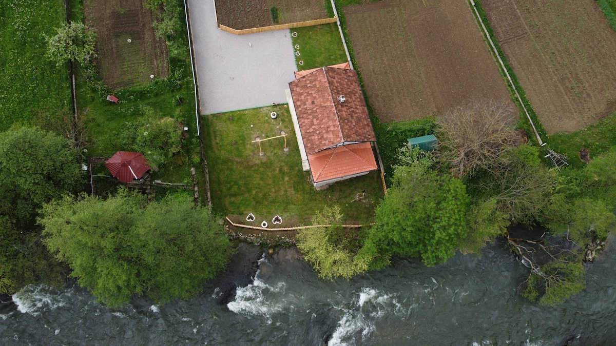 This Villa is a 3 bedroom, 1 king bed, 1 queen, bunk bed (twin & full bed). 1 & 1.5 bathroom home. Private parking which can fit 10 cars. Includes a smoke room where you can grill/bbq with your loved ones. Very spacious. A clean river that can be used for fishing needs. A full kitchen and dining table. Iron table & iron included. Washer and dryer included. Your family will be close to everything when you stay at this centrally-located place, only 10 minutes from the heart of Bugojno downtown