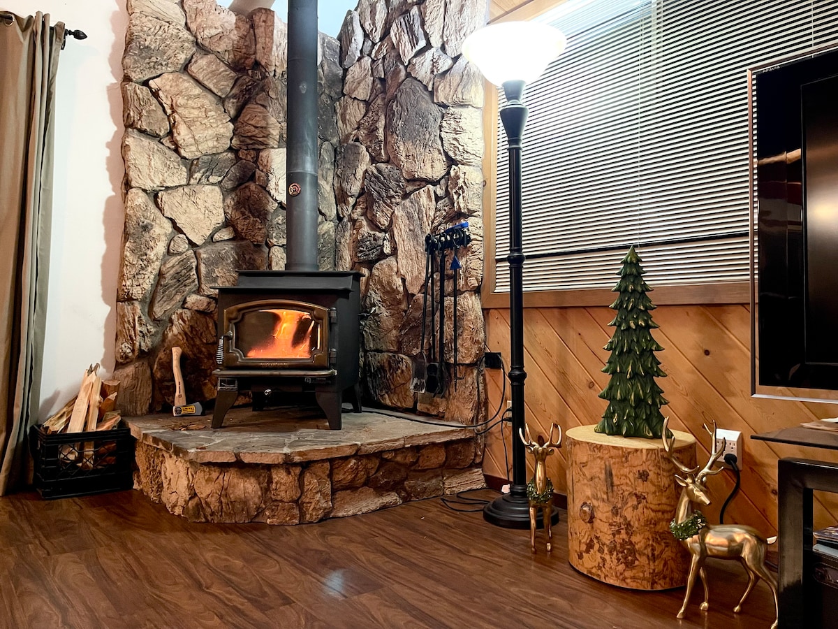 *GORGEOUS 2,600 sq ft custom 3 level CHALET IN BLUE LAKE SPRINGS* *BRIGHT, OPEN floor plan, 21' vaulted ceilings, FOREST VIEWS; AC/HEAT* *LARGE DECK 1,000+ sq ft w/ BBQ, 2 fire pits & comfortable seating* *Full-stocked CHEF'S KITCHEN* *ROMANTIC MASTER SUITE w/ gas fireplace *KID & BABY FRIENDLY cribs, baby gates, toys *Rec room w/ POOL TABLE, GAMES, 70" SMART TVs *QUIET WALKABLE neighborhood, *5 mins to HIKING TRAILS *Access to PRIVATE LAKE, POOL, REC CENTER