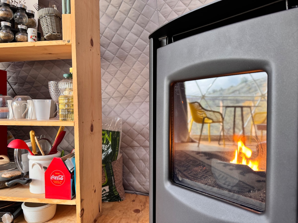 Welcome to this unique Scandinavian decorated Geo-Dome rental in Arnold, California. It is perfect for couples, small groups or families and sleeps up to six guests. In the summer you can enjoy the access to Blue Lake Springs many amenities as tennis courts, pool, lake, playground & the restaurant for a fee. All amenities are provided as soaps, firewood, hairdryer, laundry soap, shampoo, toilet roll, paper towels, linen and towels. We do not accept any animals in our house due to allergy.