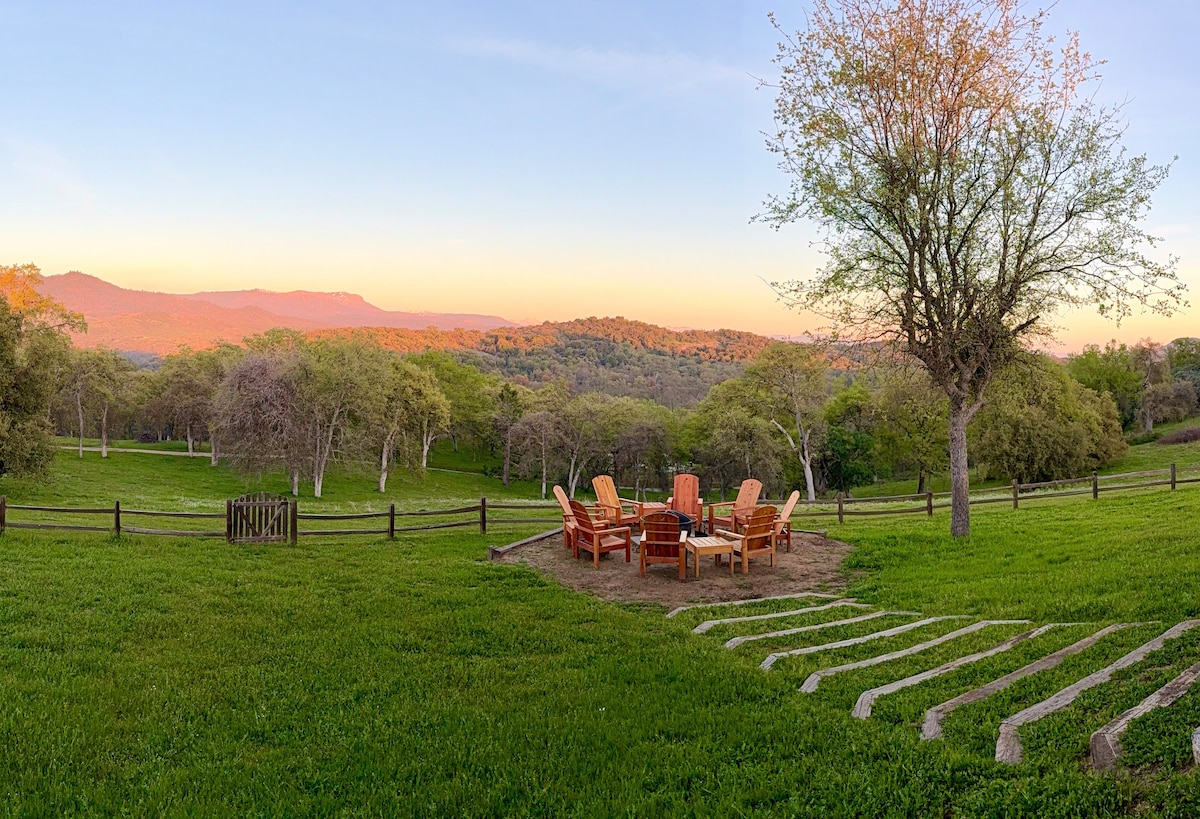Relax & unwind at a private ranch. Looking for comfort & serenity? Enjoy the quietude of a 34-acre private estate ranch. Surrounded by hundreds of acres, this property offers quiet & solitude, yet it is a convenient 10 minute drive to restaurants, coffee shops, grocery stores, golf course and local shopping (art galleries). Walk to the river, bike or stay on property to take a quiet stroll each evening. Yosemite Park gate is 40 minutes away. Return to relax at the ranch.