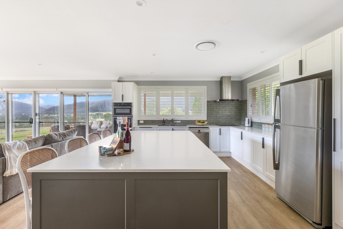 Paradise awaits when you arrive through our gates. One hour from Sydney, this serene and beautiful property offers privacy and tranquillity. Take in incredible valley vistas all whilst relaxing on the balcony, and look out for our wombats, wallabies, lyre birds, and bush turkeys. Sometimes we have cows in our paddocks. Spot wild deer and platypus in our creek. Full size petanque pitch, billiards, darts games room Sit around our fire pit and watch the sky come alive with stars at night. Bliss!