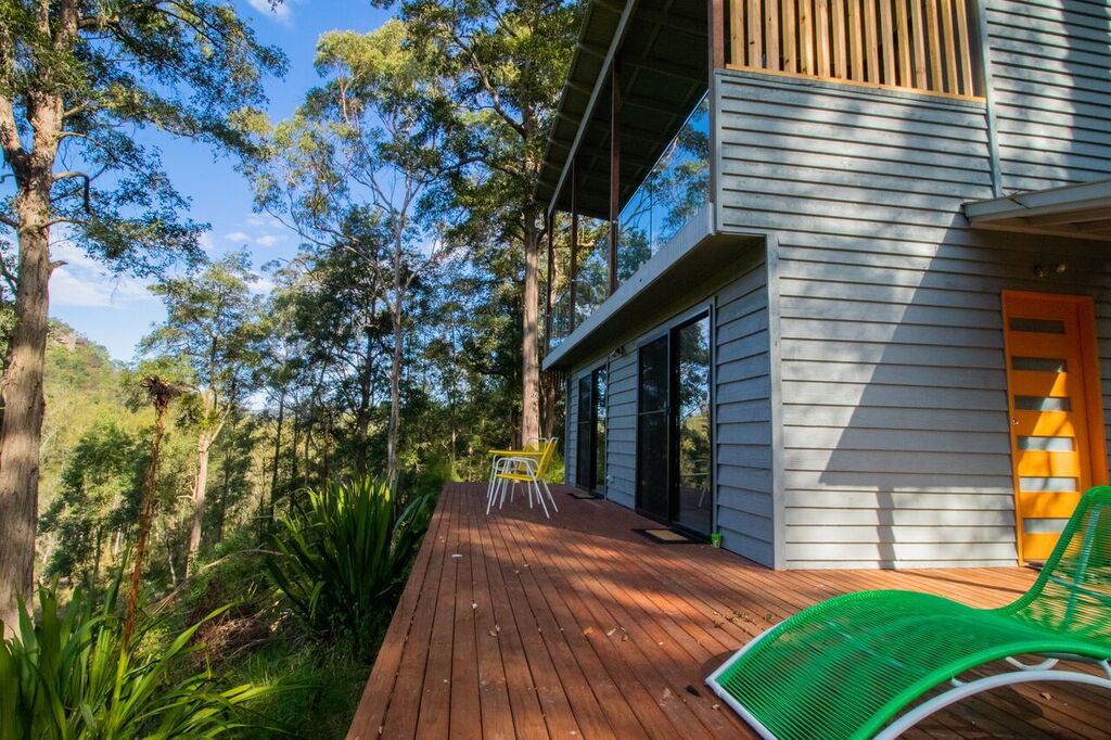 Gymea Cottage is a two-storey cabin. The upper deck is independent of the lower floor & has a private bedroom, a lounge, a kitchen with a beautiful veranda between the treetops. The lower deck has a private bedroom, stunning verandah and views, but a more compact lounge & kitchen. You can indulge yourself in your own private spa and watch the stars. Idyllic location in a bush setting with lots of privacy! It is located on 126 acres of bushland with 3 other cottages spaced out on the property.